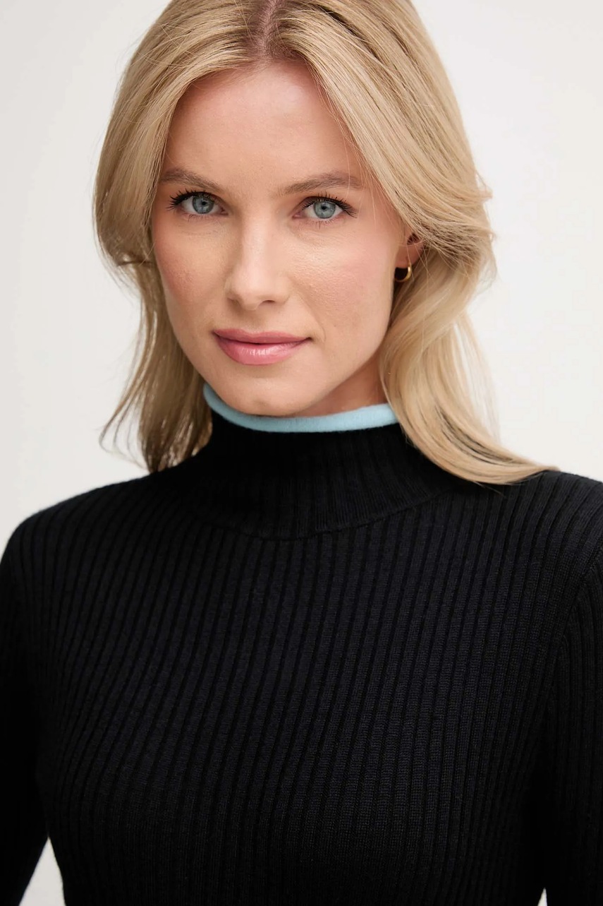 Calvin Klein Jeans sweter z dodatkiem wełny damski kolor czarny lekki z półgolfem LV044D314G