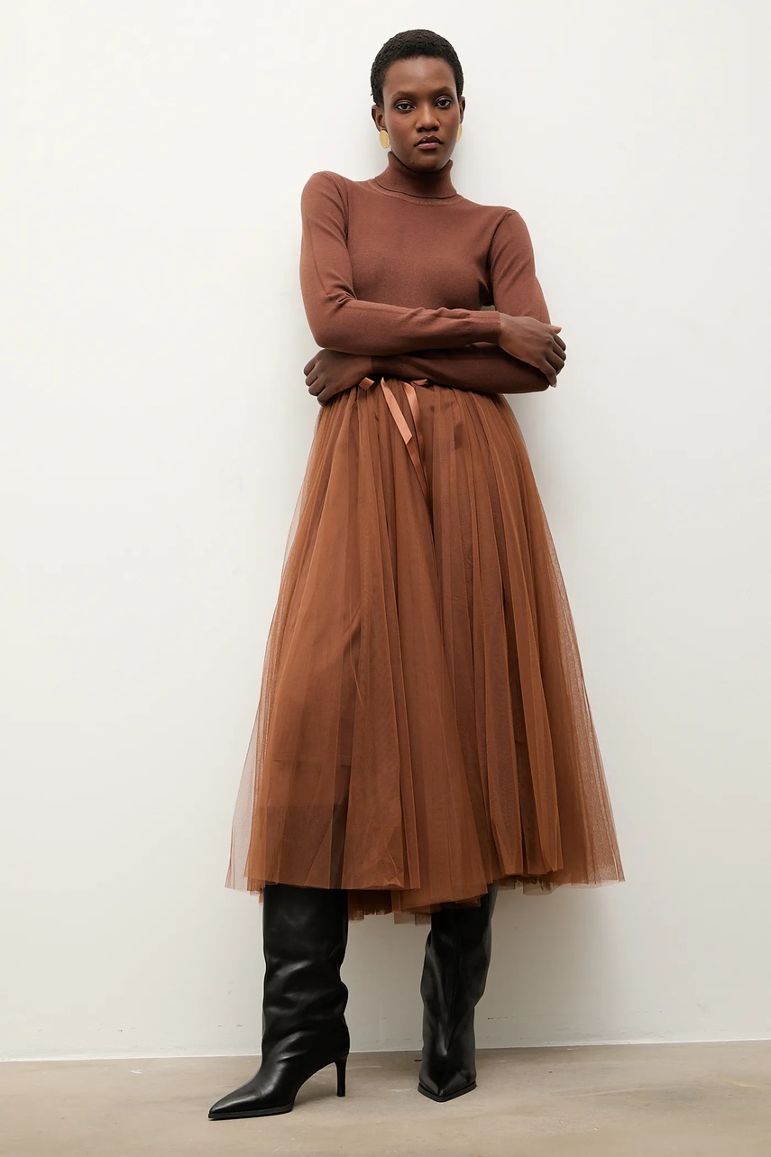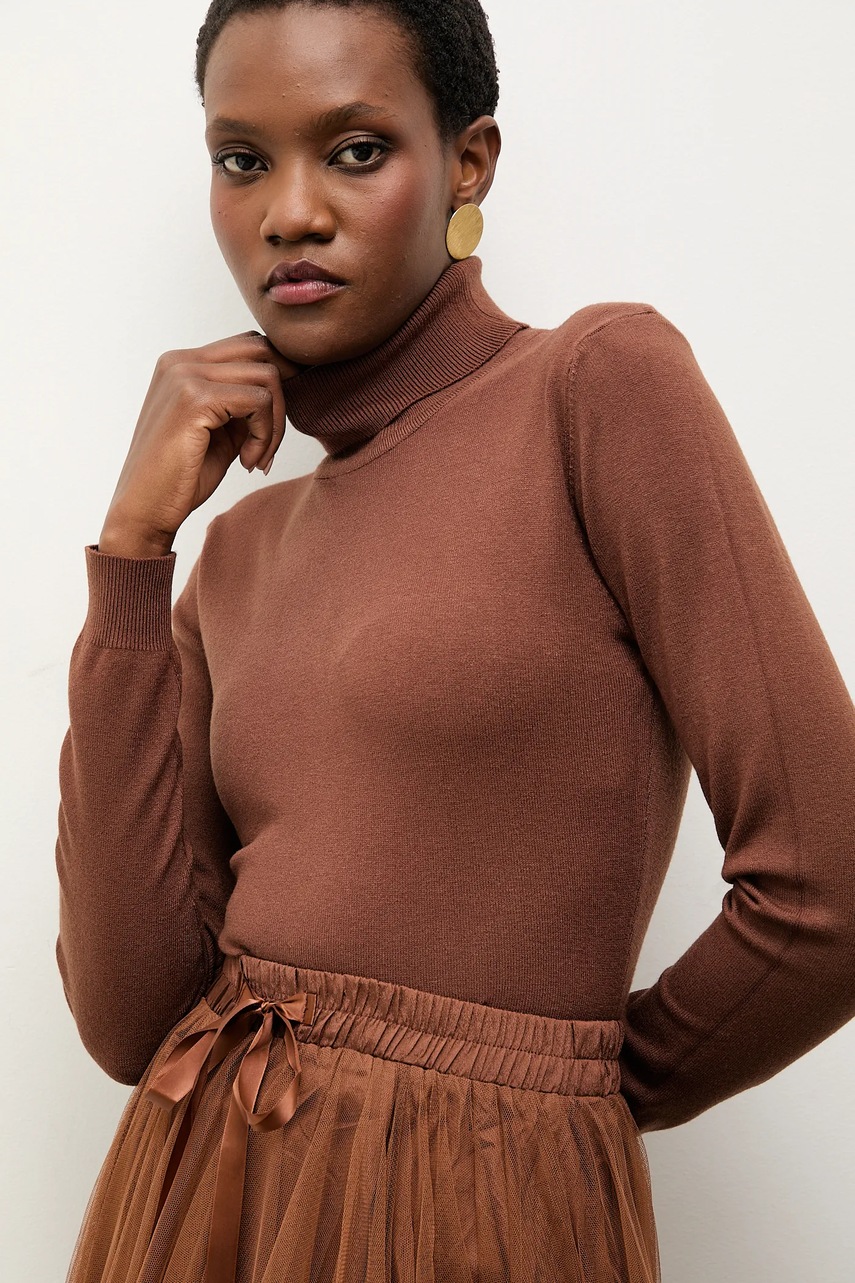 Answear Lab sweter z kaszmirem kolor brązowy lekki z golfem