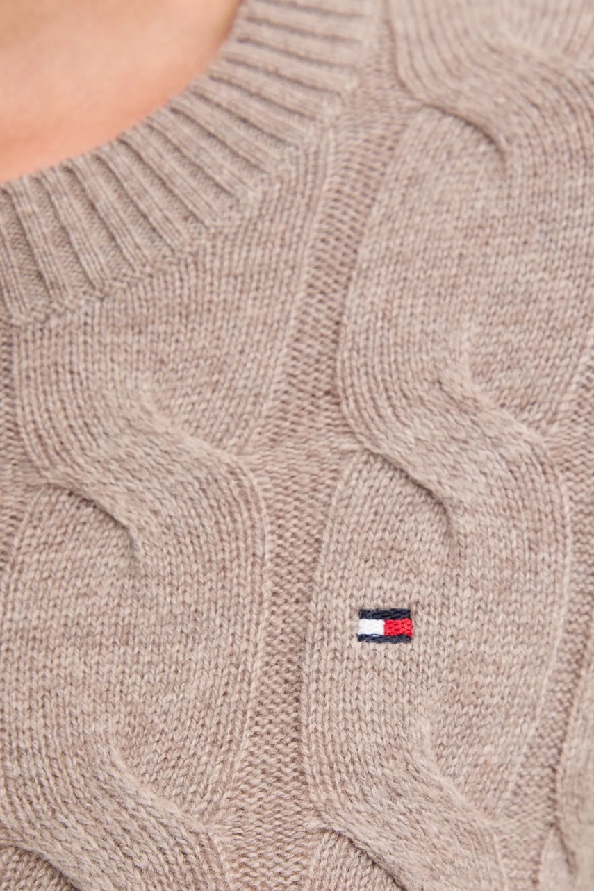Tommy Hilfiger sweter wełniany damski kolor brązowy lekki WW0WW43586