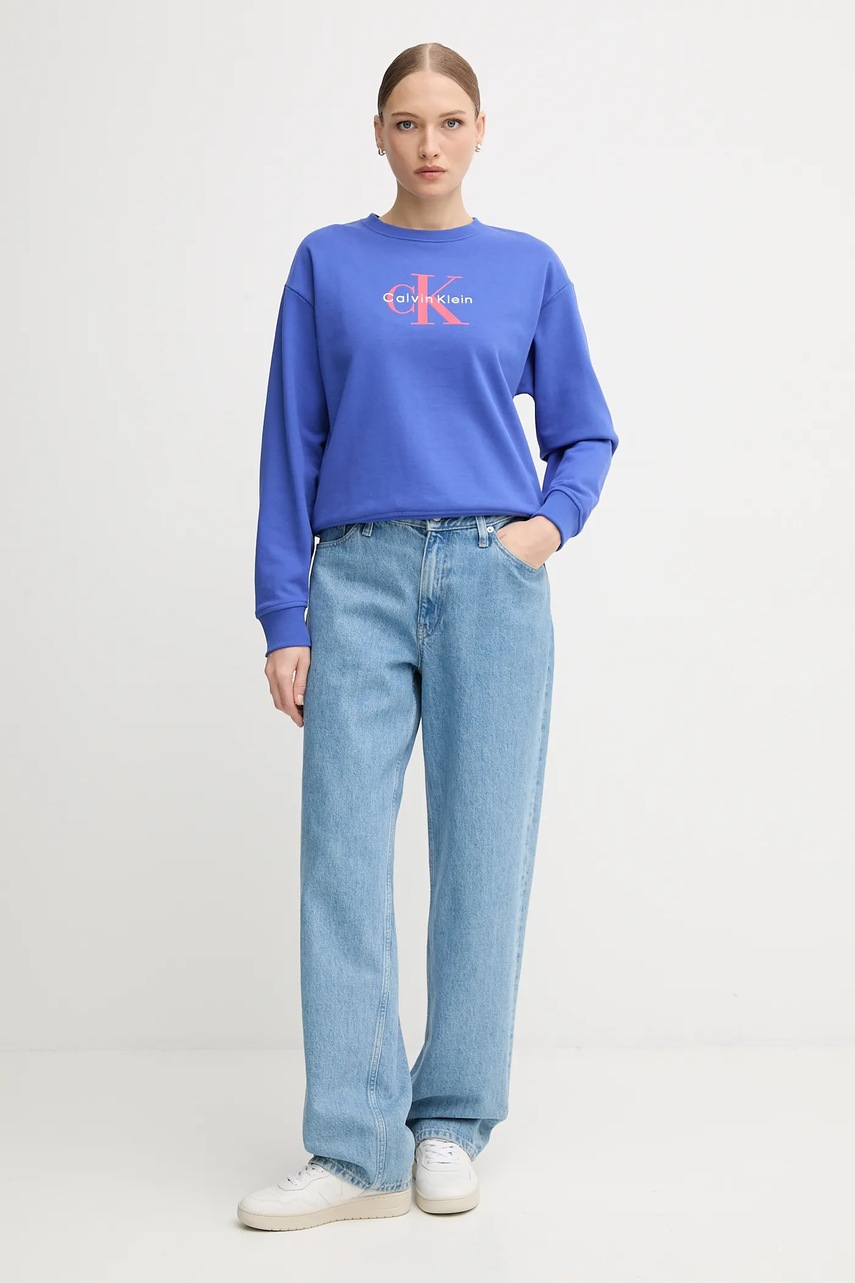 Calvin Klein Jeans bluza damska kolor niebieski z nadrukiem LV047B234G