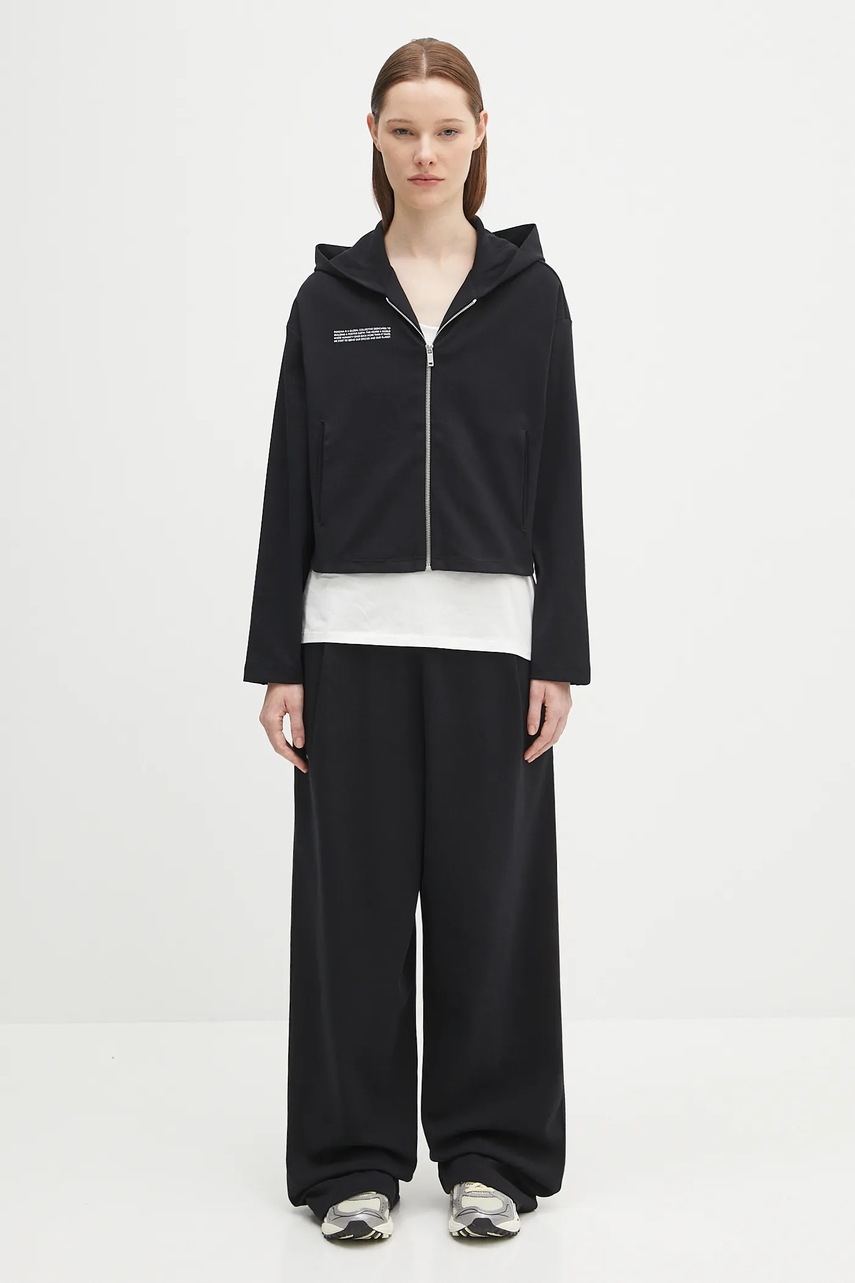 Pangaia bluza DNA Double Jersey Zip Up Hoodie damska kolor czarny z kapturem gładka 10002361