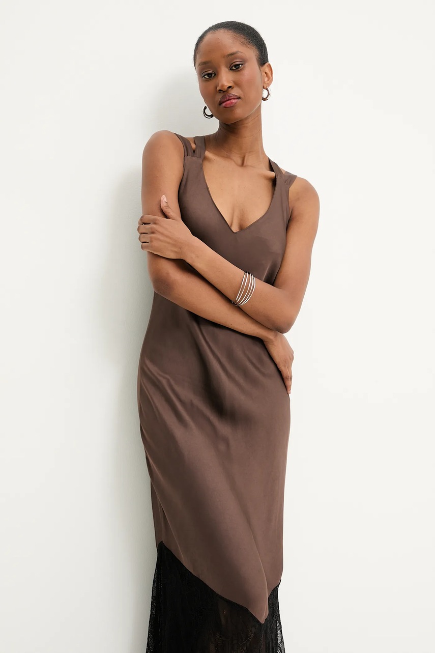 Answear.LAB sukienka kolor brązowy maxi rozkloszowana