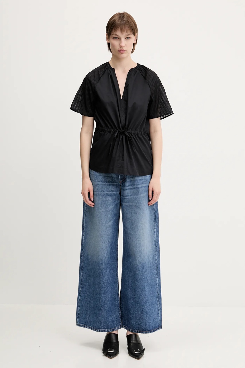Samsoe Samsoe bluzka bawełniana Satoma damska kolor czarny gładka F25100007
