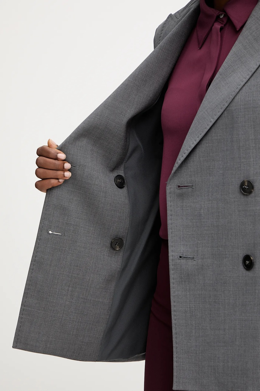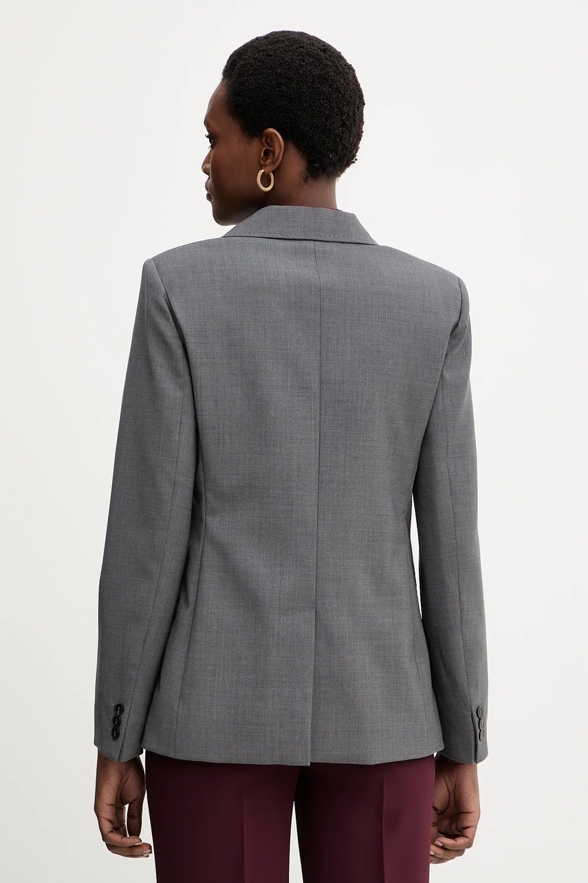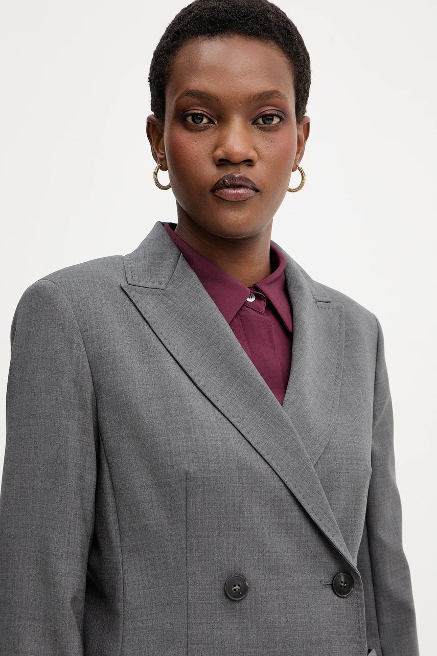 Weekend Max Mara marynarka wełniana ORNATI kolor szary dwurzędowa gładka 2525046012600