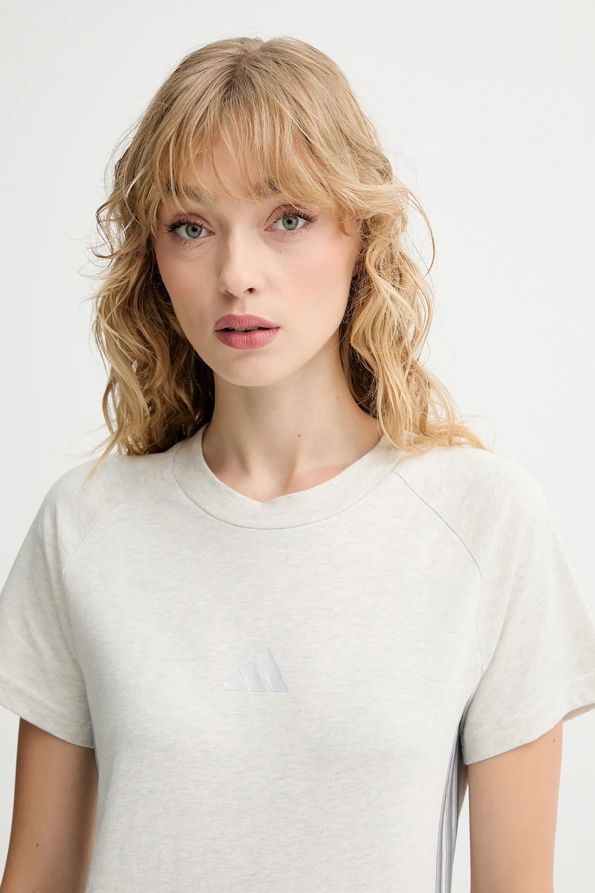 adidas t-shirt bawełniany Holiday 3-Stripes damski kolor beżowy JM1880