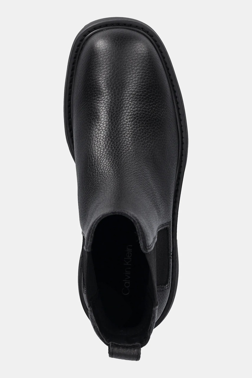 Calvin Klein sztyblety skórzane CHUNKY CHELSEA BOOT LTH kolor czarny na płaskim obcasie YW0YW02072