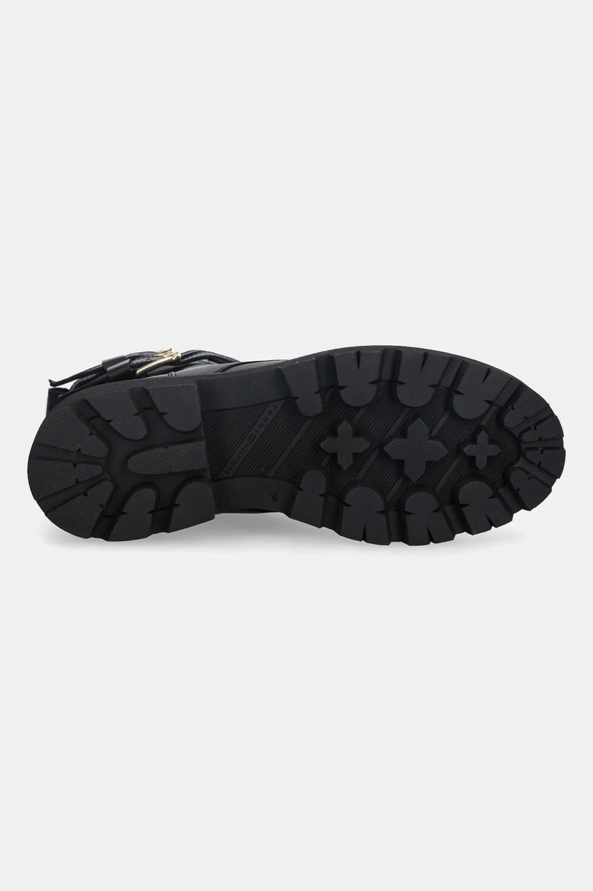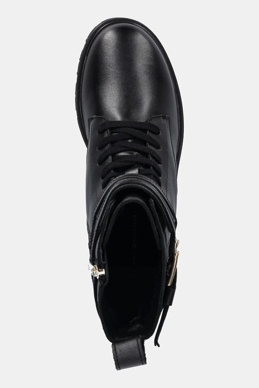 Tommy Hilfiger botki skórzane TH LTHR BIKER LACEUP damskie kolor czarny na płaskim obcasie FW0FW08986