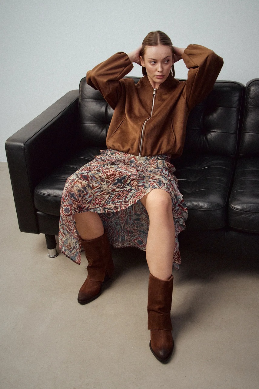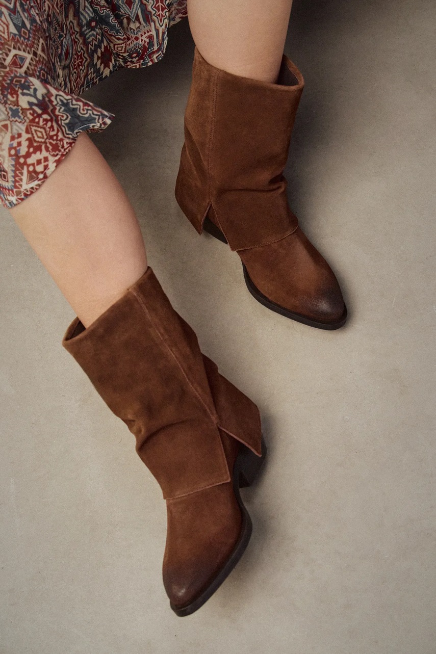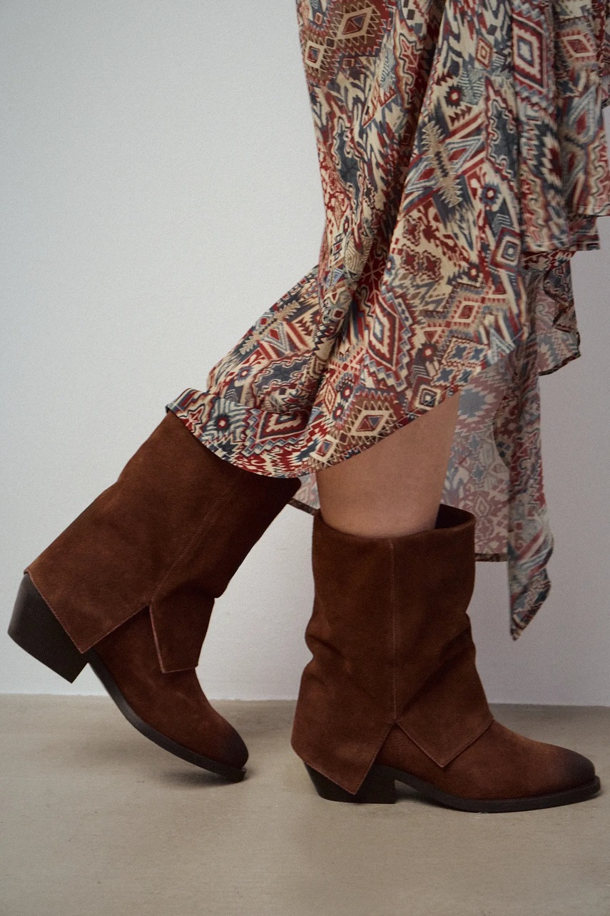 Medicine kowbojki zamszowe damskie kolor brązowy na słupku