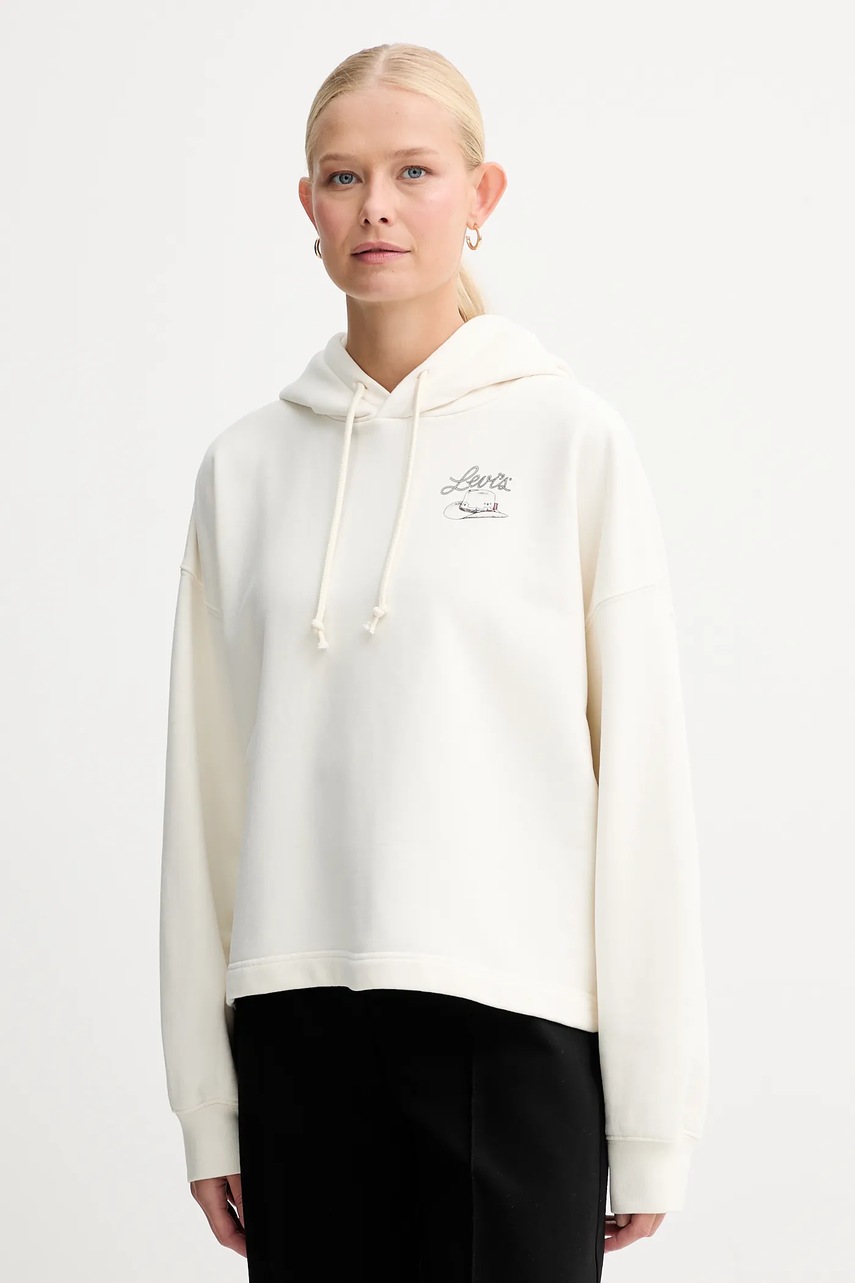 Levi's bluza bawełniana damska kolor beżowy z kapturem z nadrukiem A9414