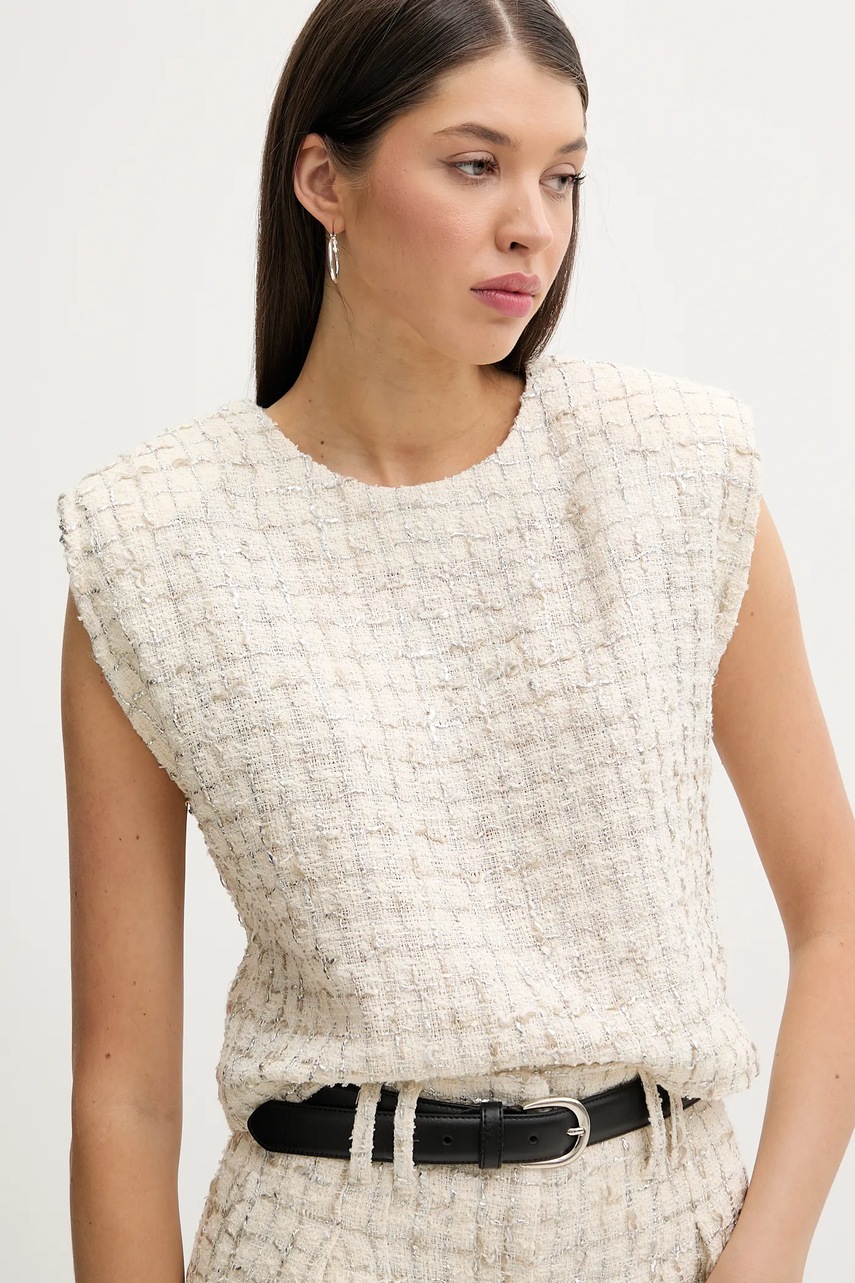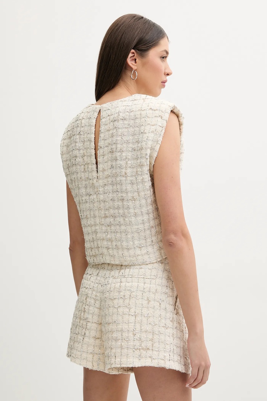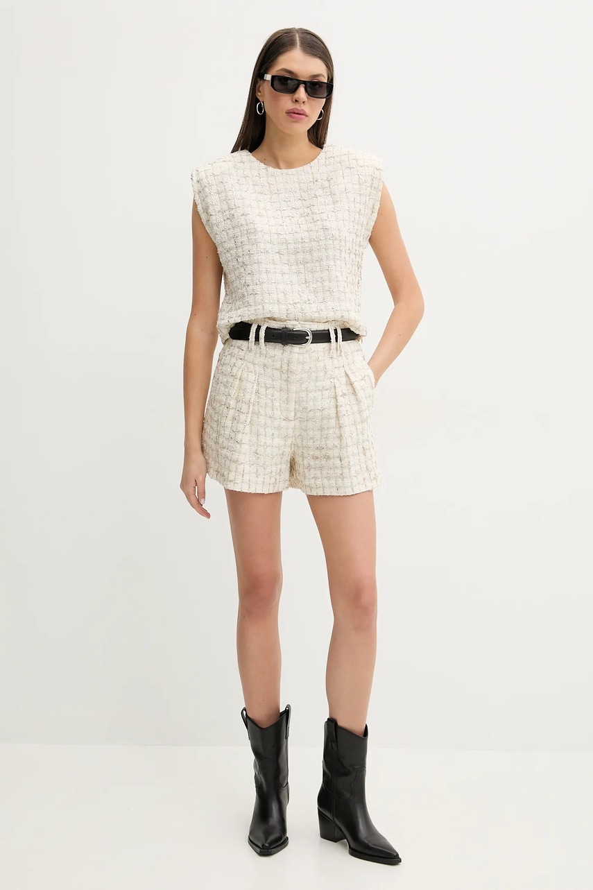 IRO bluzka z domieszką lnu damska kolor beżowy wzorzysta WP16XUNG