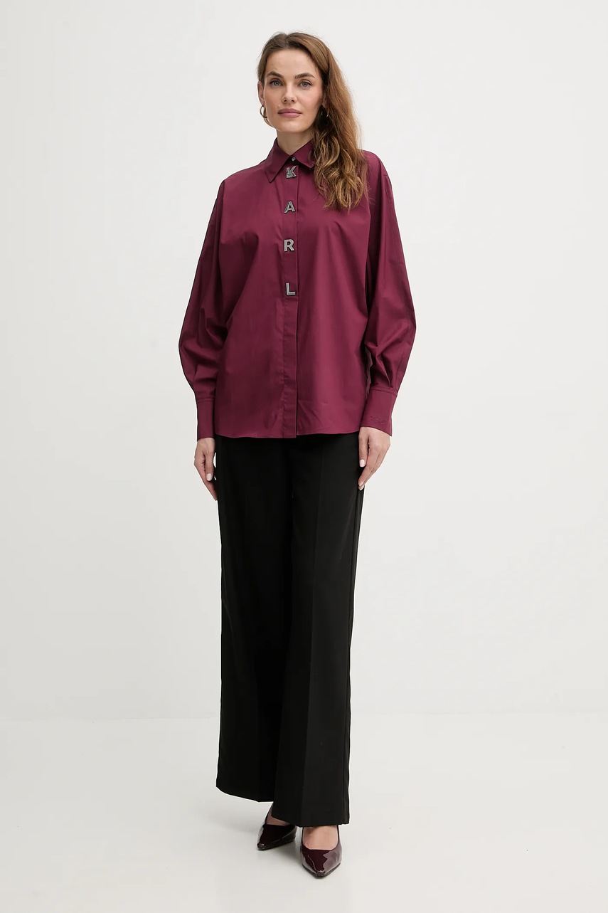 Karl Lagerfeld koszula bawełniana damska kolor bordowy relaxed z kołnierzykiem klasycznym A4W11022