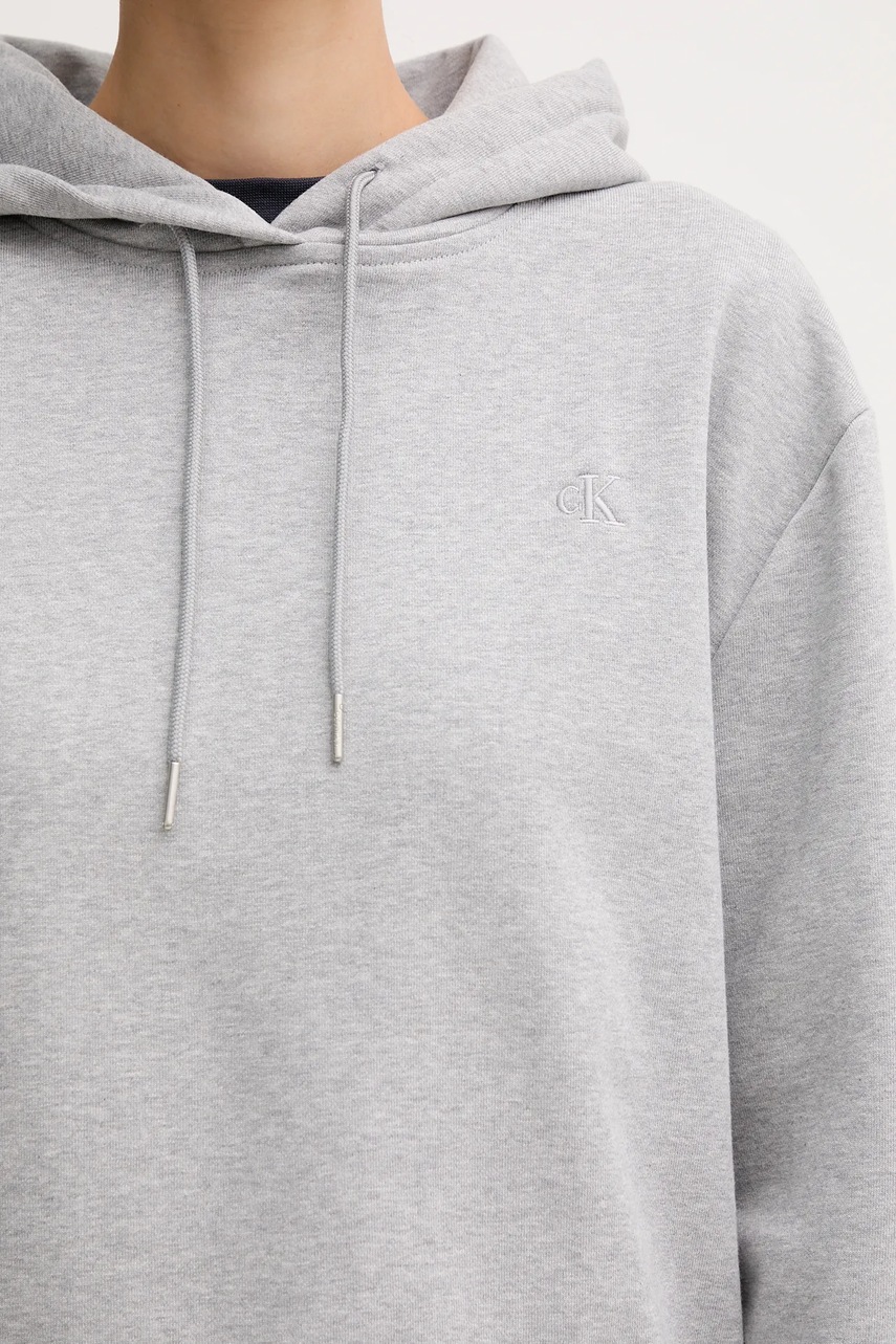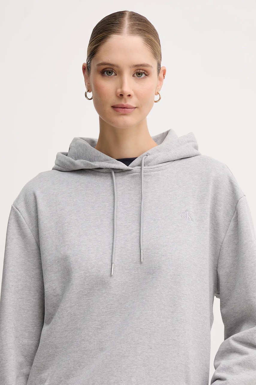 Calvin Klein Jeans bluza damska kolor szary z kapturem gładka LV047C224G