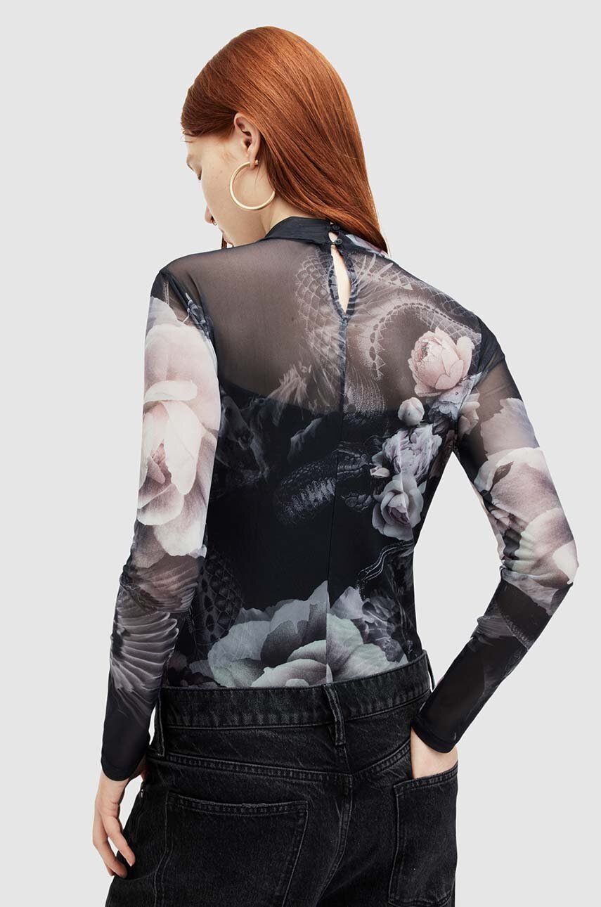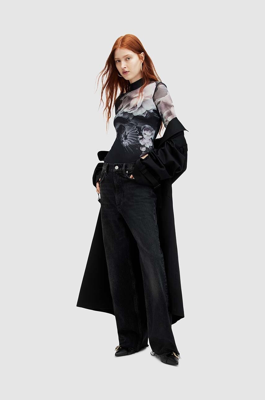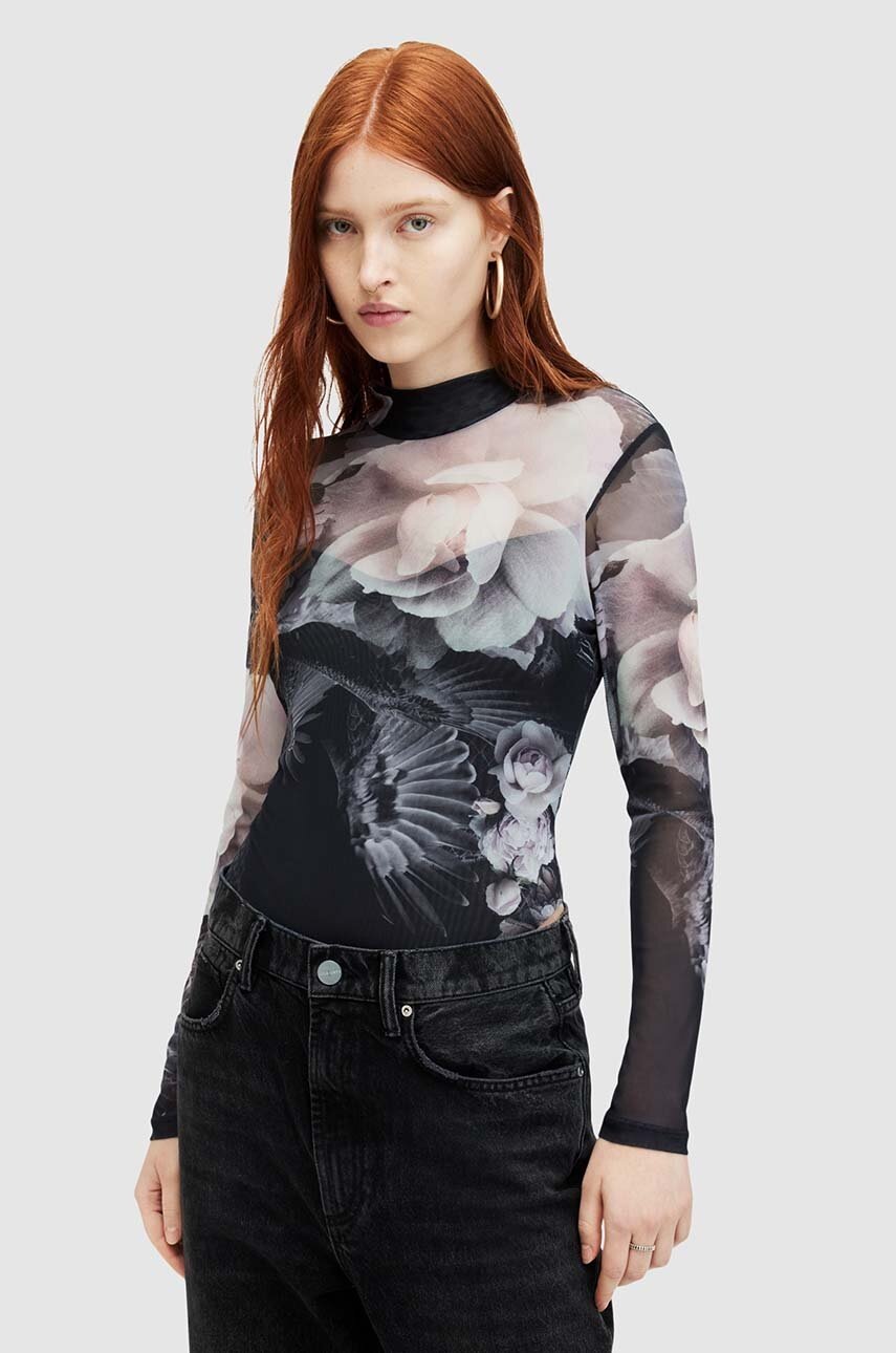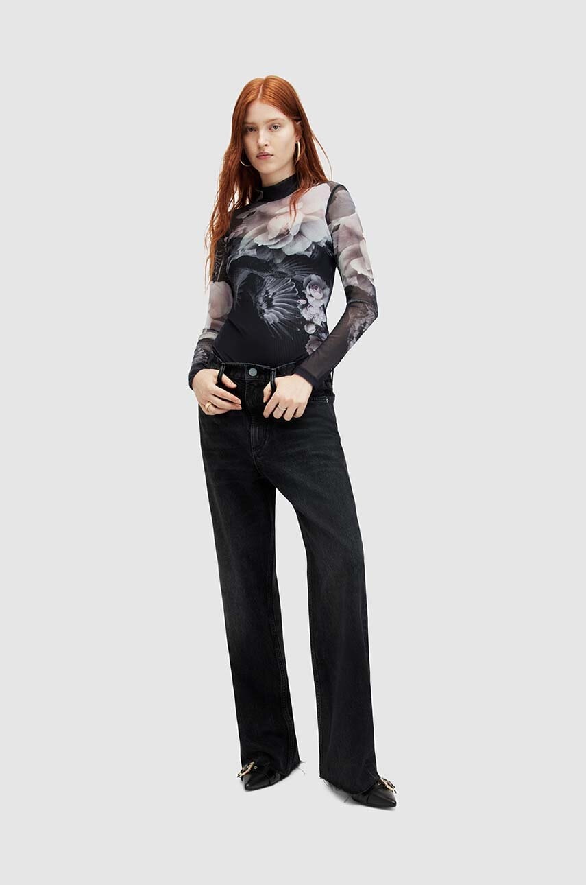 AllSaints bluzka ELIA VALLEY damska kolor czarny wzorzysta