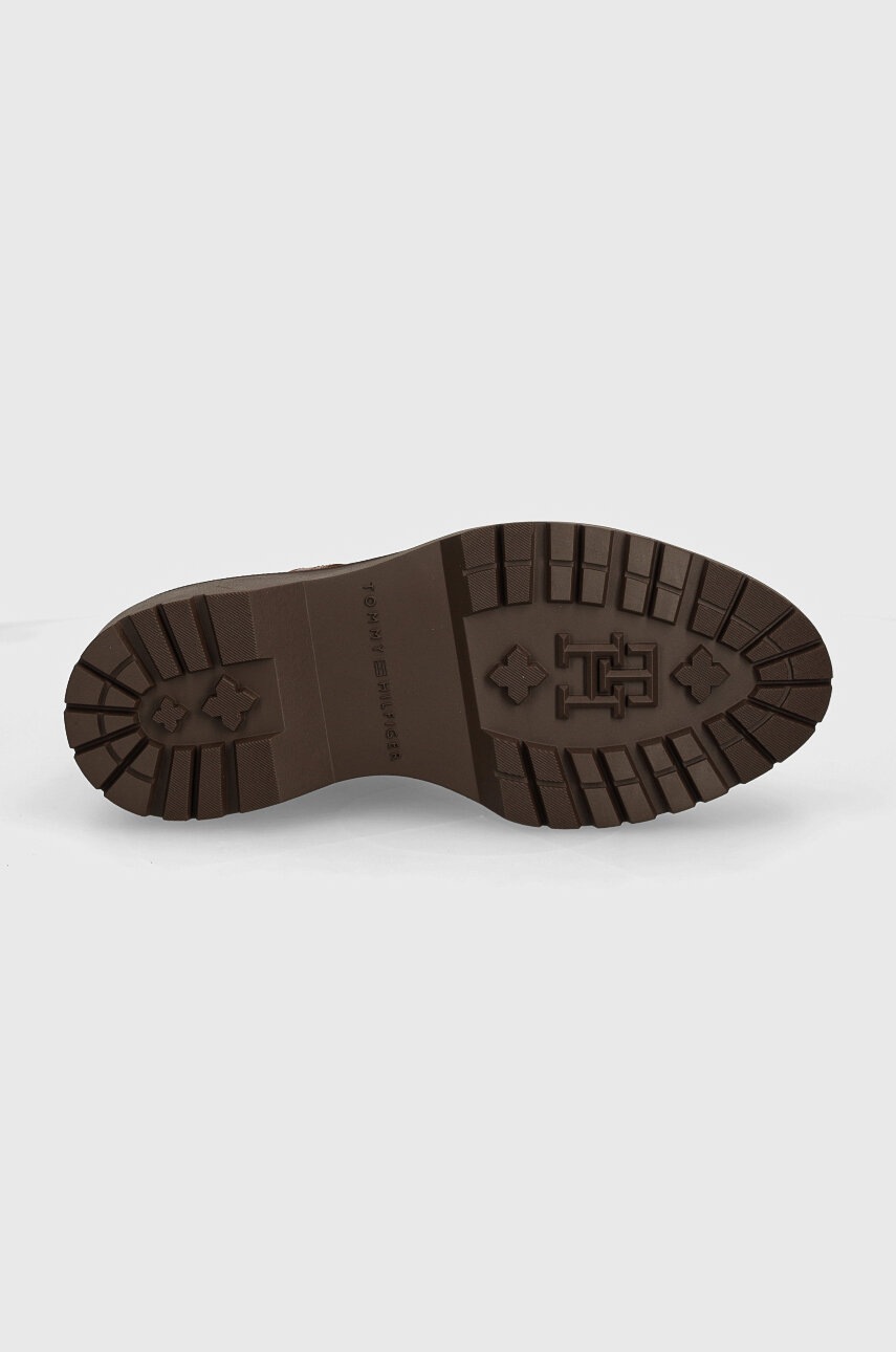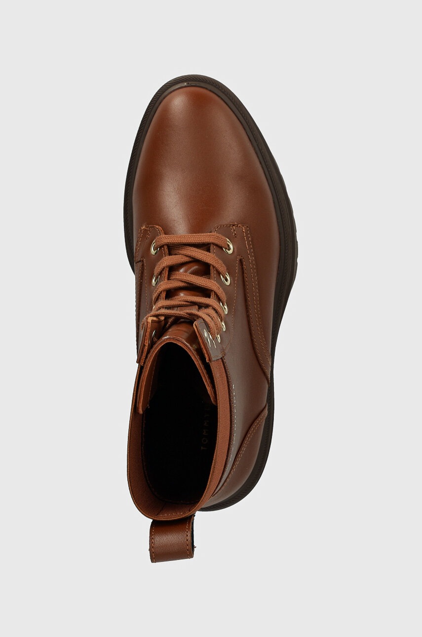 Tommy Hilfiger botki LEATHER ELASTIC RIB LACEUP damskie kolor brązowy na płaskim obcasie FW0FW08440