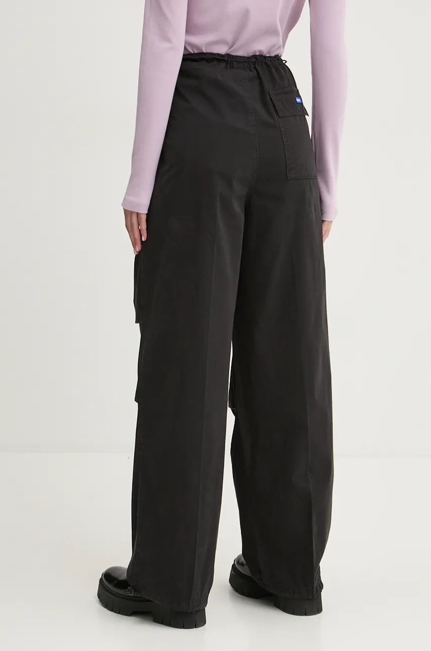 HUGO Blue spodnie damskie kolor czarny fason chinos high waist 50527950