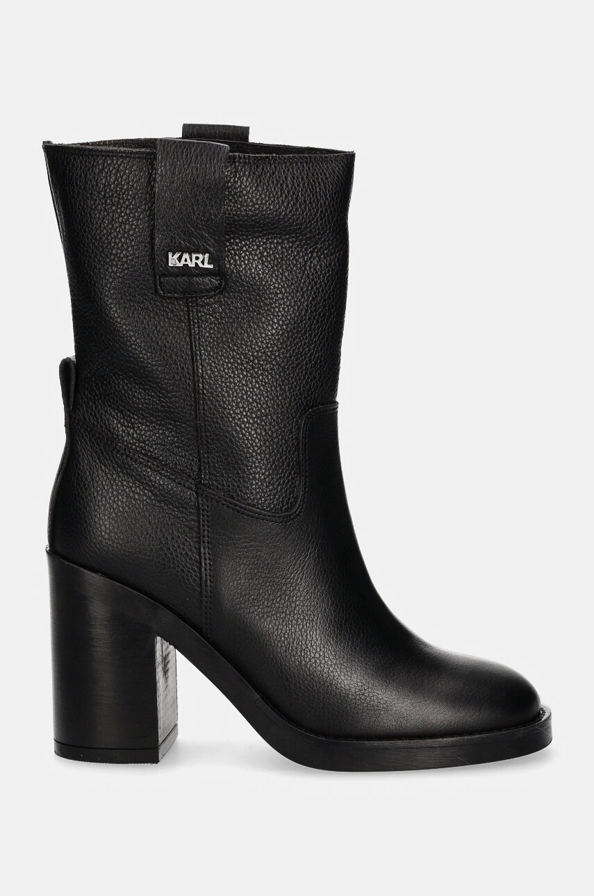 Karl Lagerfeld botki skórzane BROOKLYN damskie kolor czarny na słupku KL41874