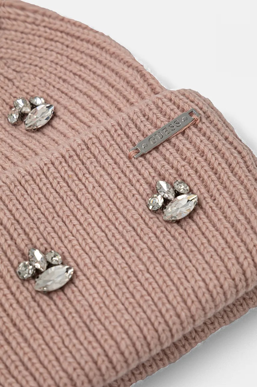 Guess czapka z domieszką wełny kolor różowy AW5198 POL01