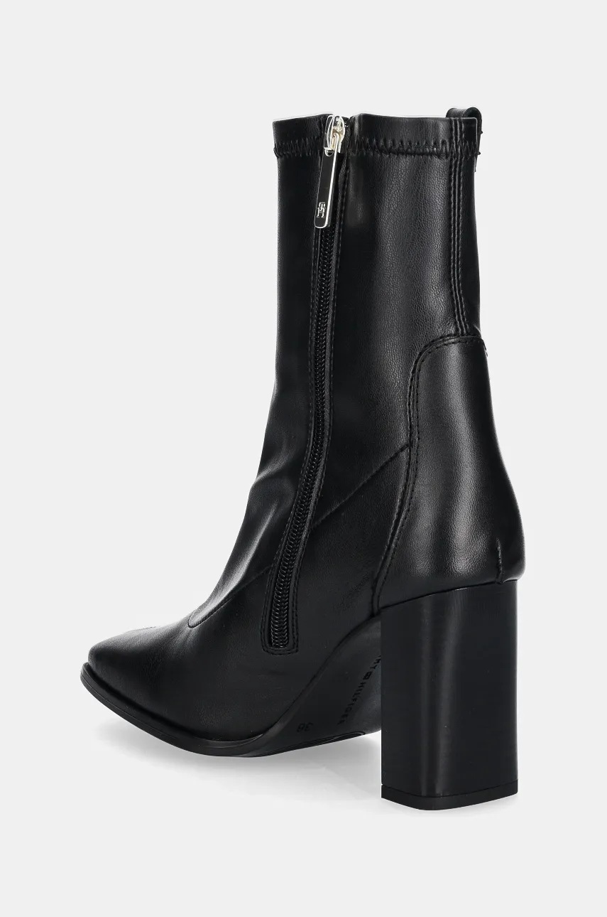 Tommy Hilfiger botki PARTY LEATHER SOCK HEEL BOOTIE damskie kolor czarny na słupku FW0FW08250