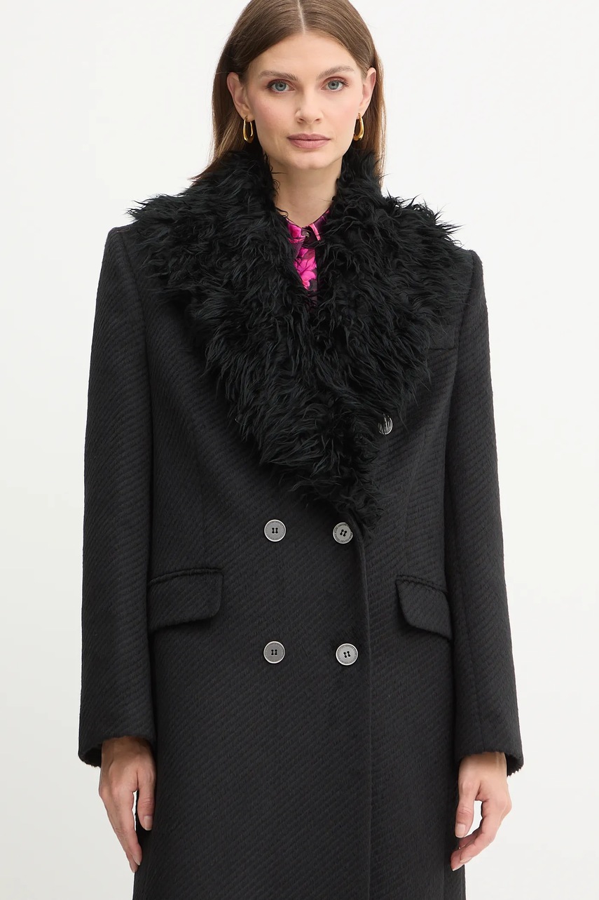 Versace Jeans Couture płaszcz z dodatkiem wełny kolor czarny 79HAT418 N0342