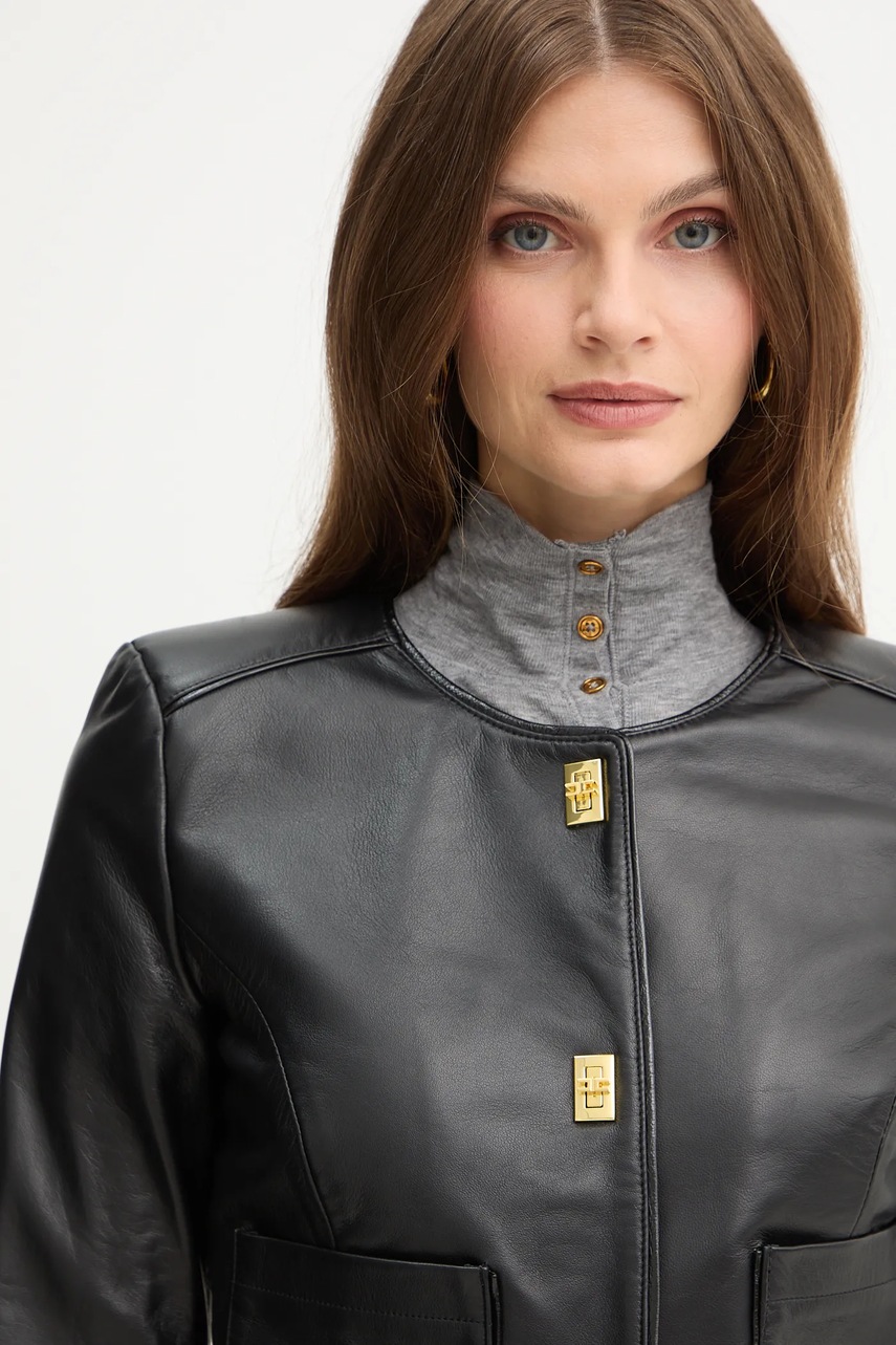 Elisabetta Franchi kurtka skórzana kolor czarny przejściowa GD52Z56E2