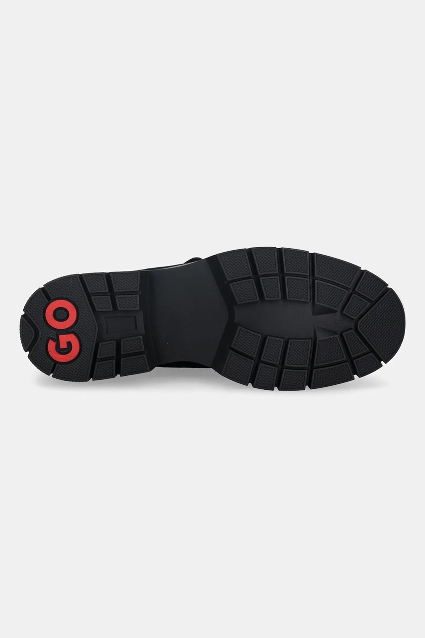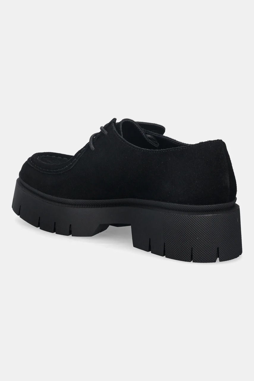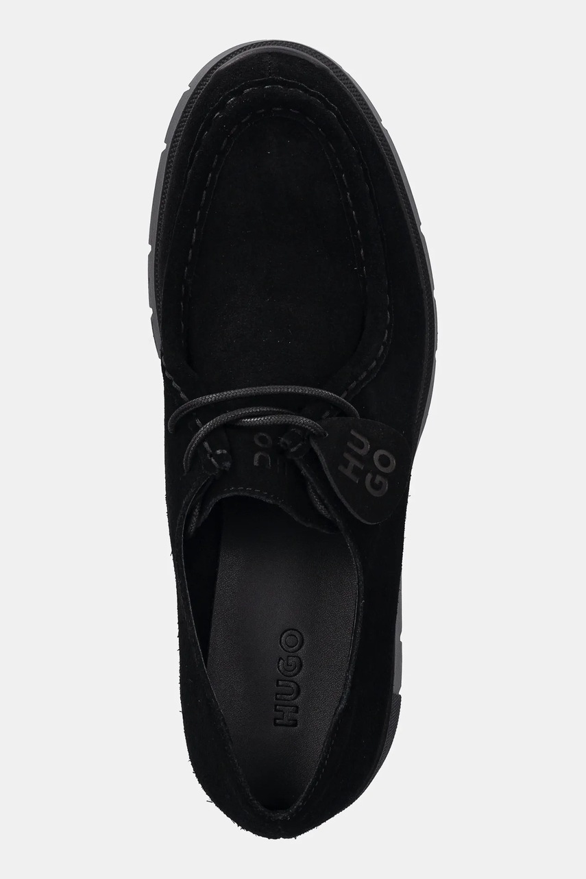HUGO półbuty zamszowe Kris damskie kolor czarny na płaskim obcasie 50552698