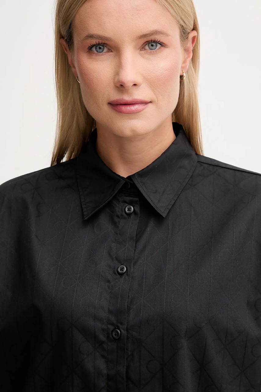Calvin Klein Jeans koszula bawełniana damska kolor czarny relaxed z kołnierzykiem klasycznym LV044D167G