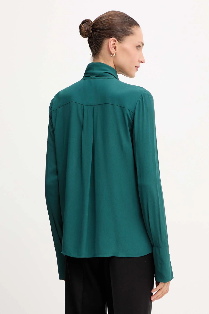 Patrizia Pepe koszula damska kolor zielony regular z wiązanym dekoltem 2C1648 A8I1