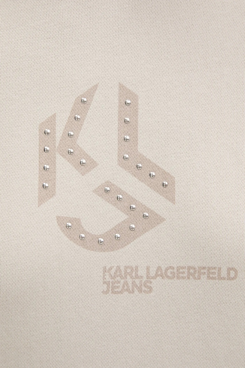 Karl Lagerfeld Jeans bluza bawełniana damska kolor beżowy z kapturem z nadrukiem A4W20004