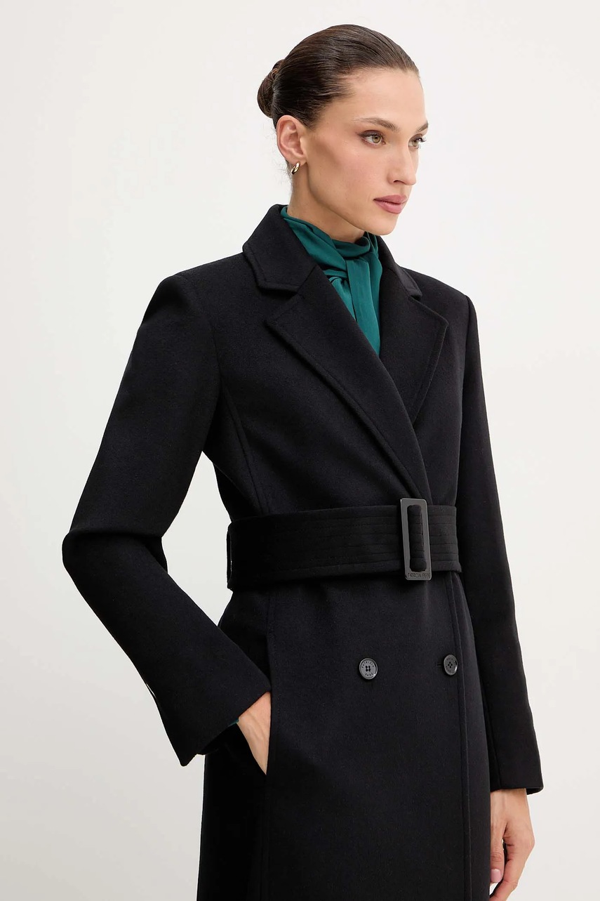 Patrizia Pepe płaszcz z dodatkiem wełny kolor czarny 2O0195 A171
