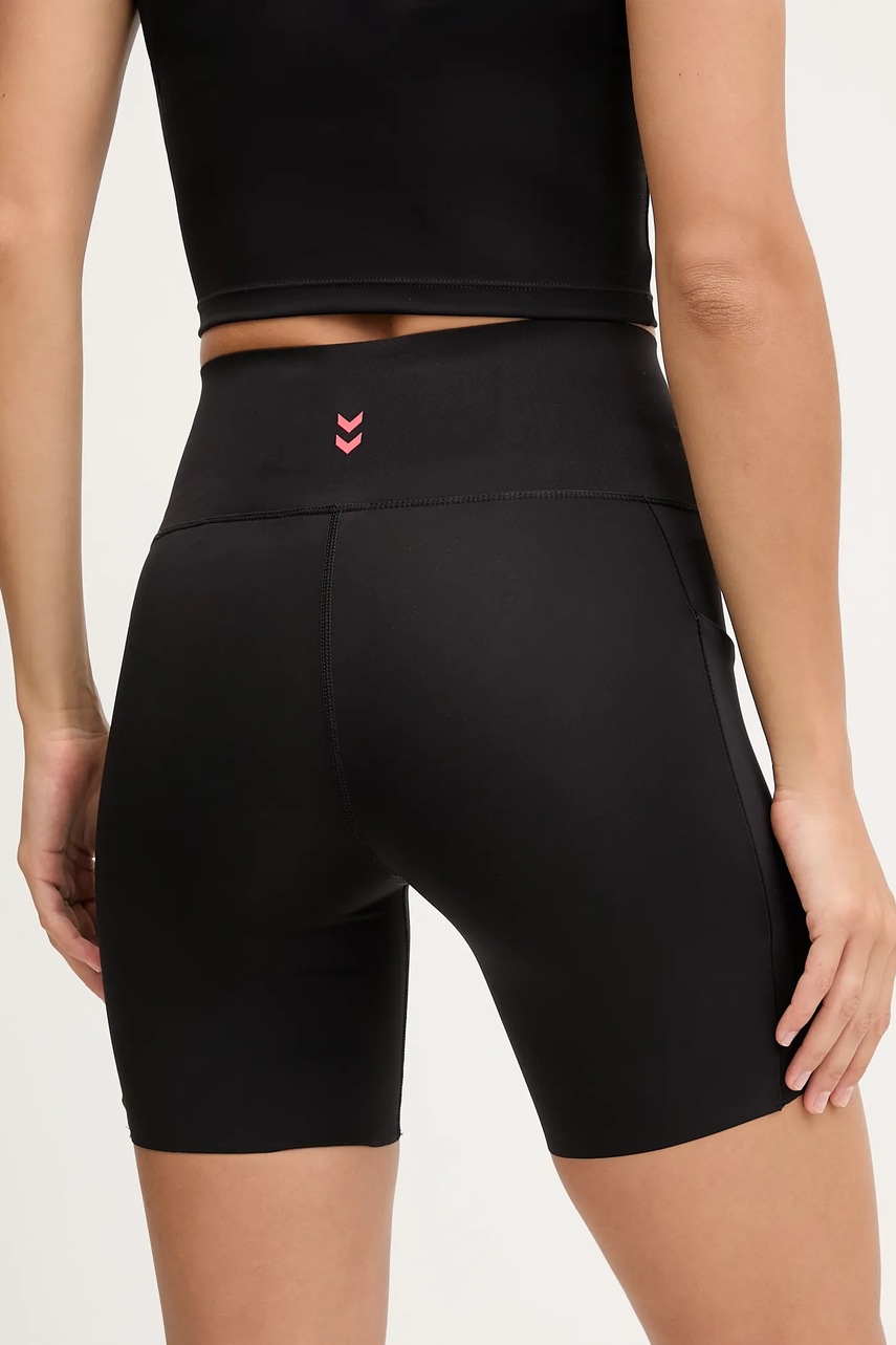 Hummel szorty sportowe damskie kolor czarny gładkie medium waist 230083