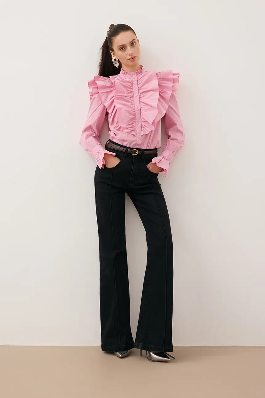 Bizuu koszula SANNI damska kolor różowy regular ze stójką SANNI RÓŻOWY