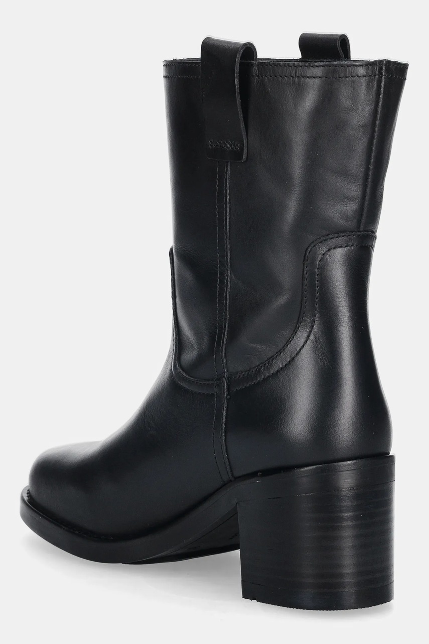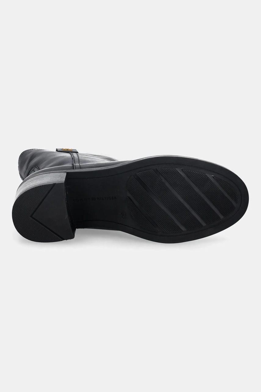 Tommy Hilfiger botki skórzane RIDING LTHR MID BOOT BLOCK HEEL damskie kolor czarny na słupku FW0FW08776