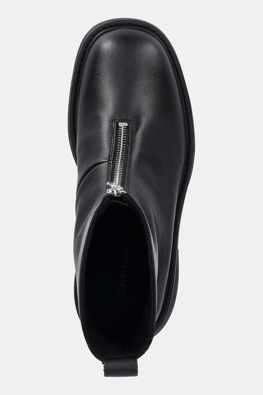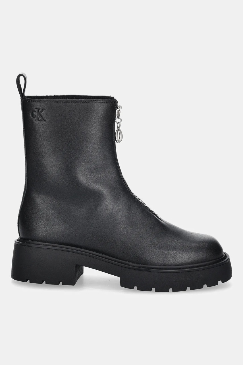 Calvin Klein botki skórzane CHUNKY FRONT ZIP BOOT damskie kolor czarny na płaskim obcasie YW0YW01907