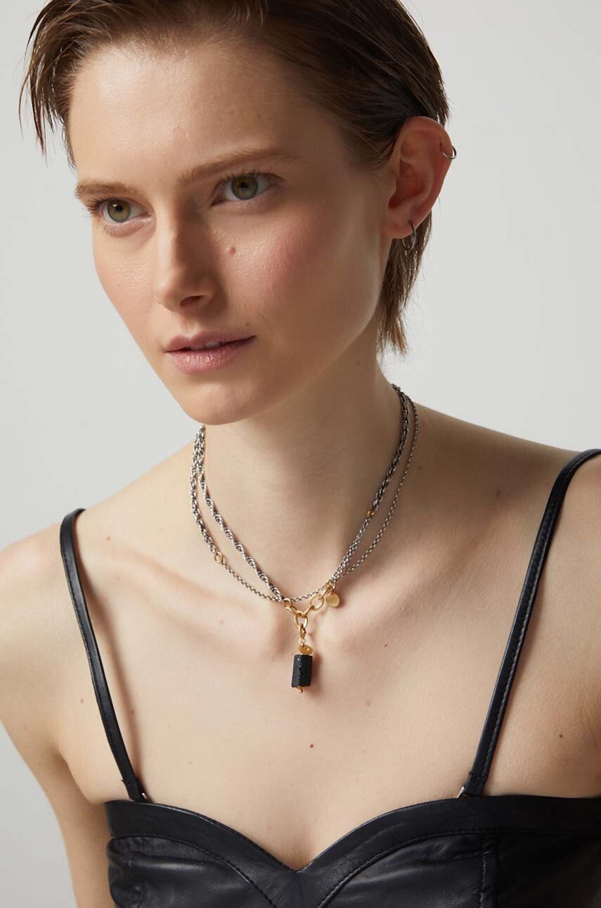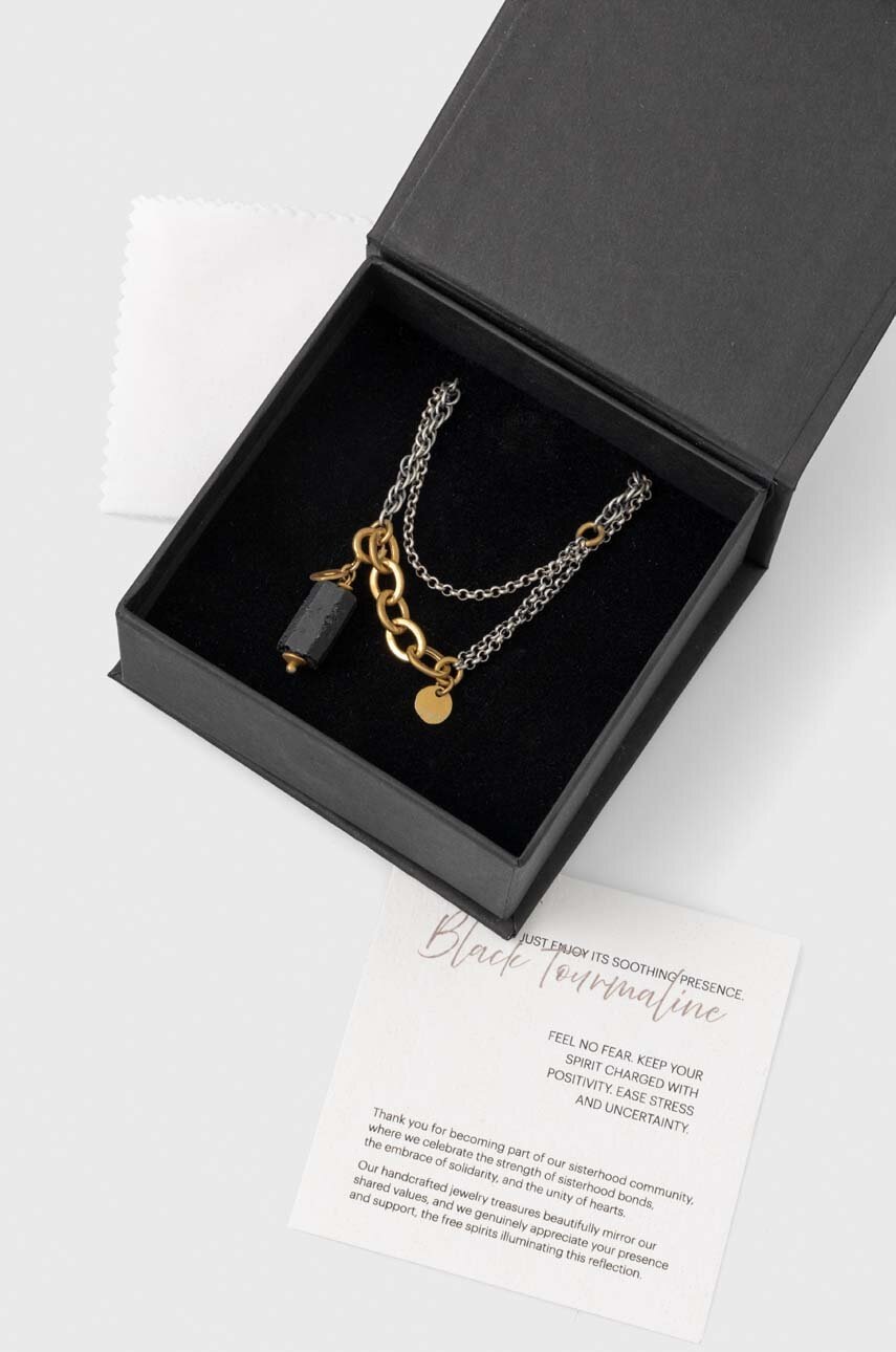 Skład: Srebro oksydowane (postarzane) próba 925, częściowo pozłacane 24k złotem, Czarny turmalin