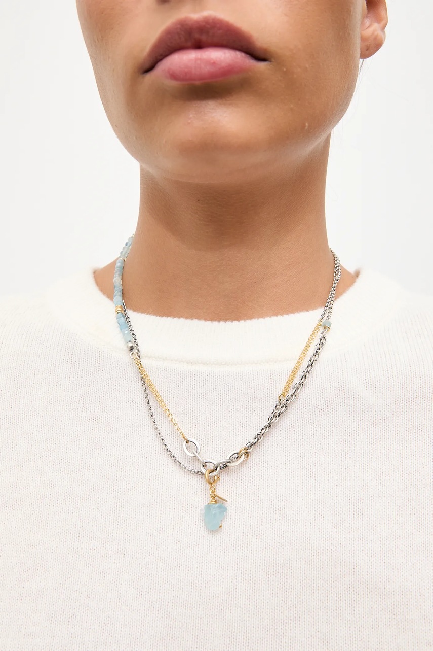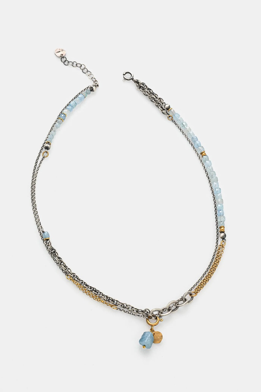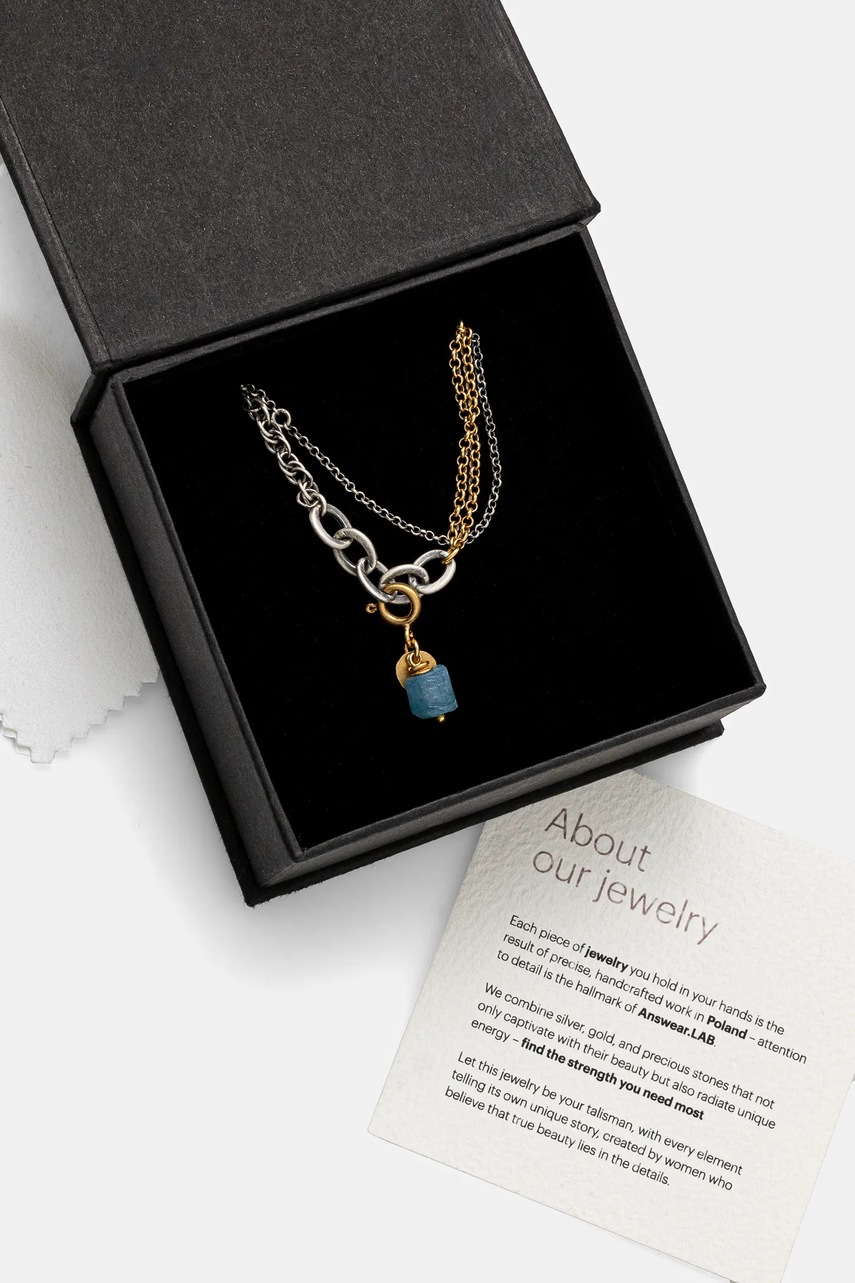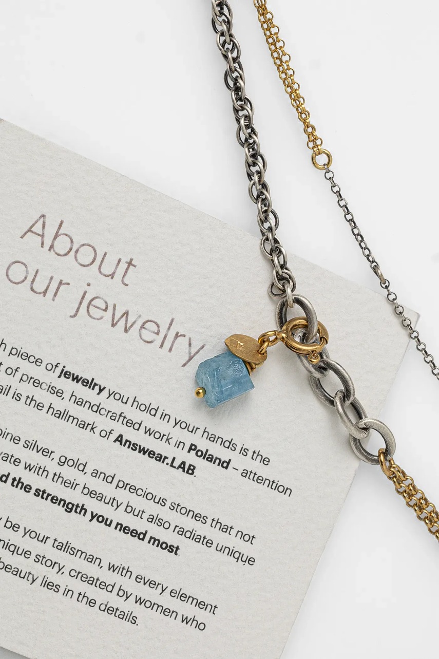 Answear.LAB naszyjnik z akwamarynem, ręcznie wykonany, ze srebra pokrytego złotem