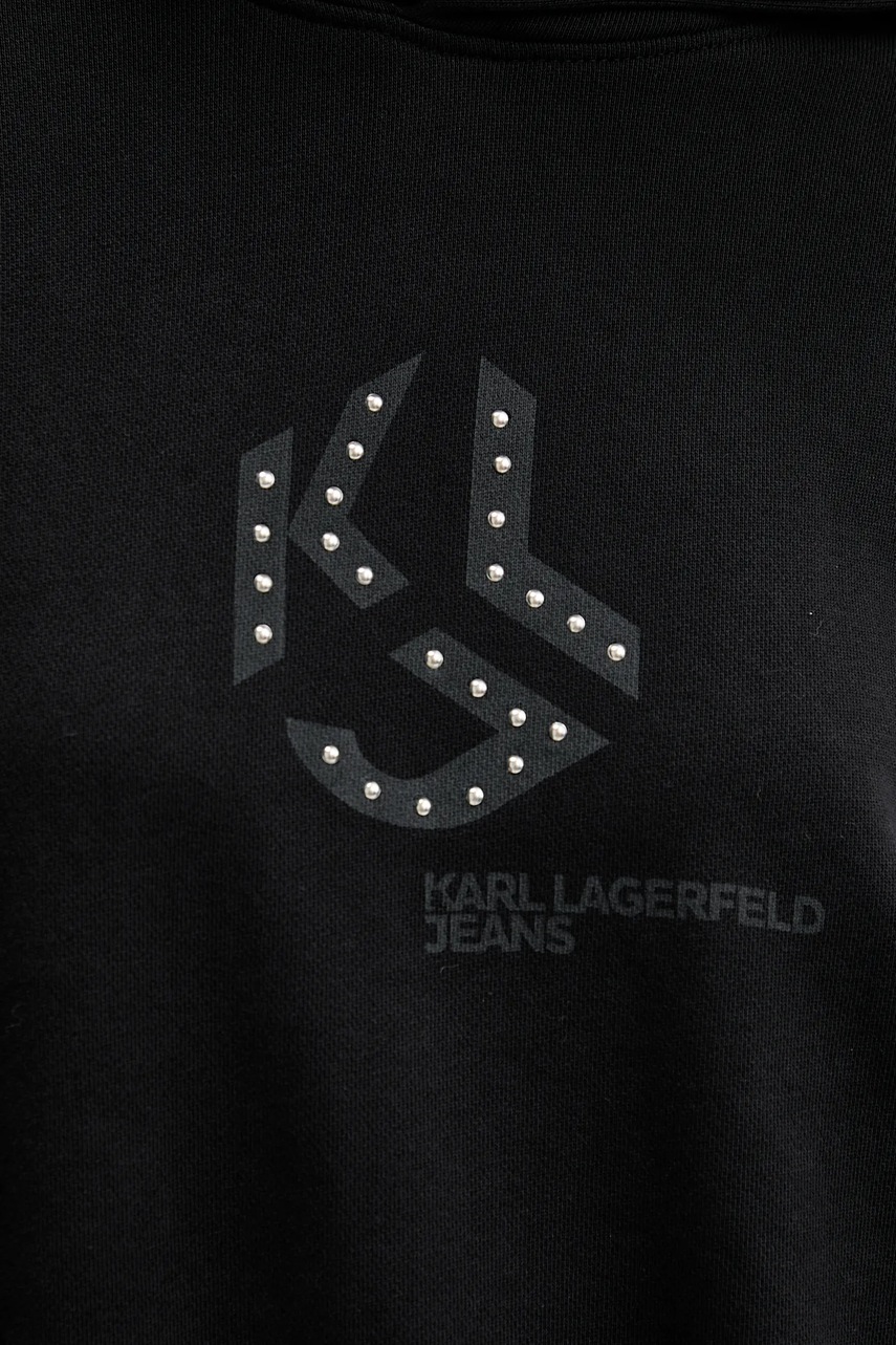 Karl Lagerfeld Jeans bluza bawełniana damska kolor czarny z kapturem z nadrukiem A4W20004