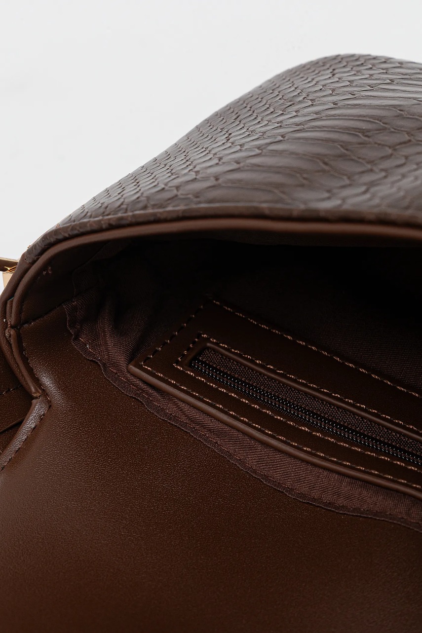 - Model z wstawką o fakturze zwierzęcej skóry.