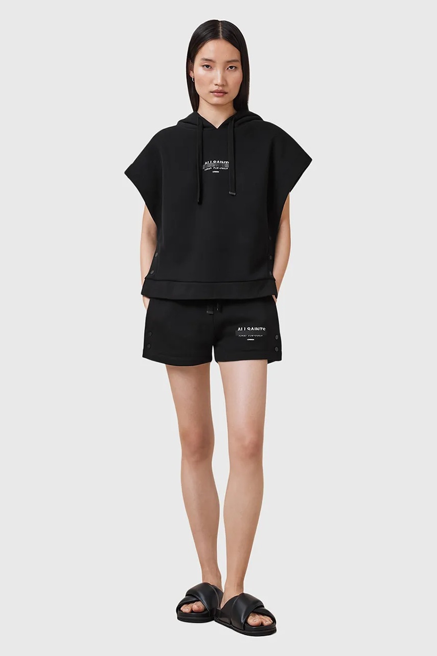 AllSaints bluza SORRI damska kolor czarny z kapturem z nadrukiem W093JC