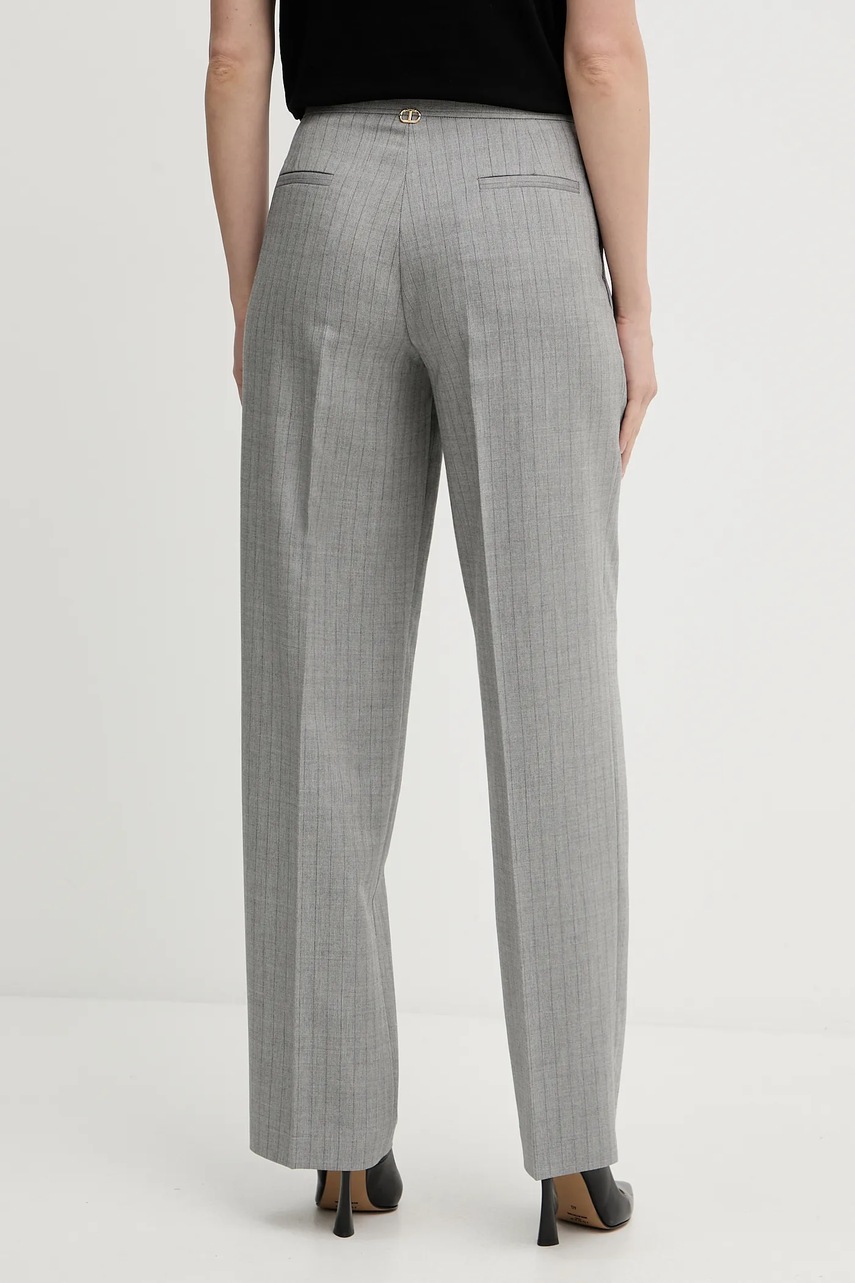 Twinset spodnie z domieszką wełny damskie kolor szary proste high waist 252TP2632