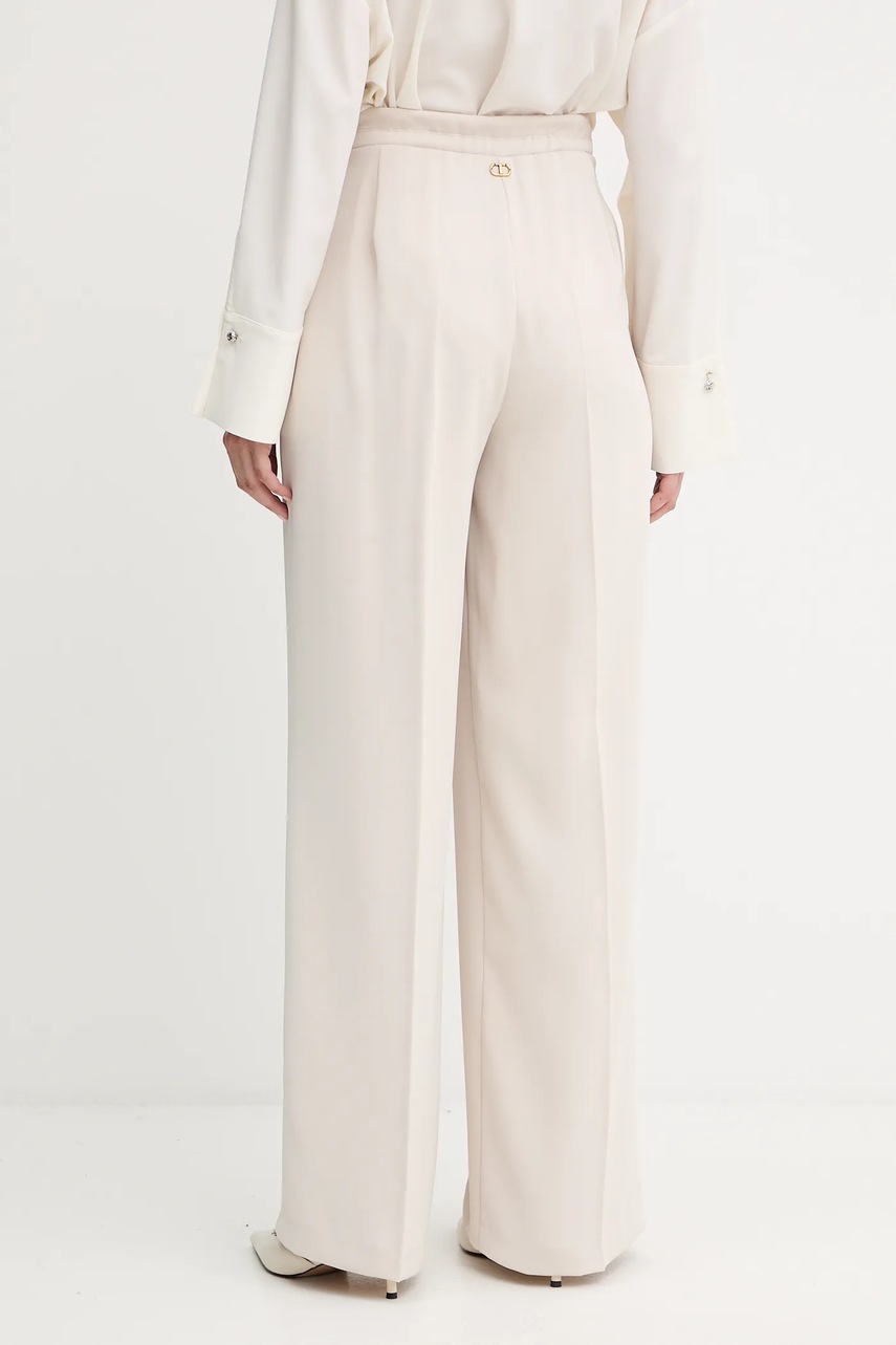 Twinset spodnie damskie kolor beżowy szerokie high waist 252TF2011