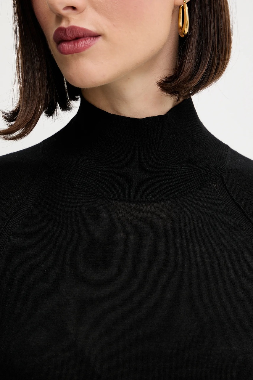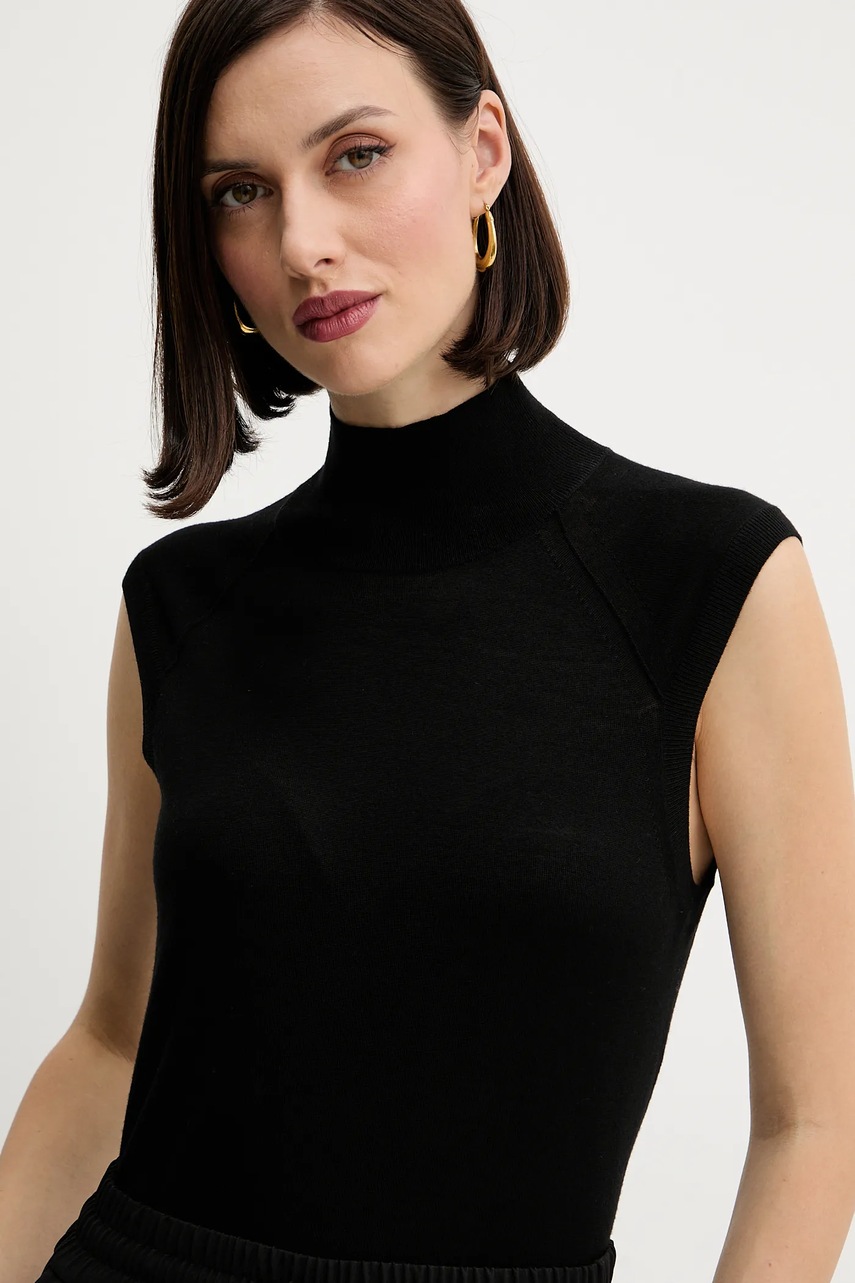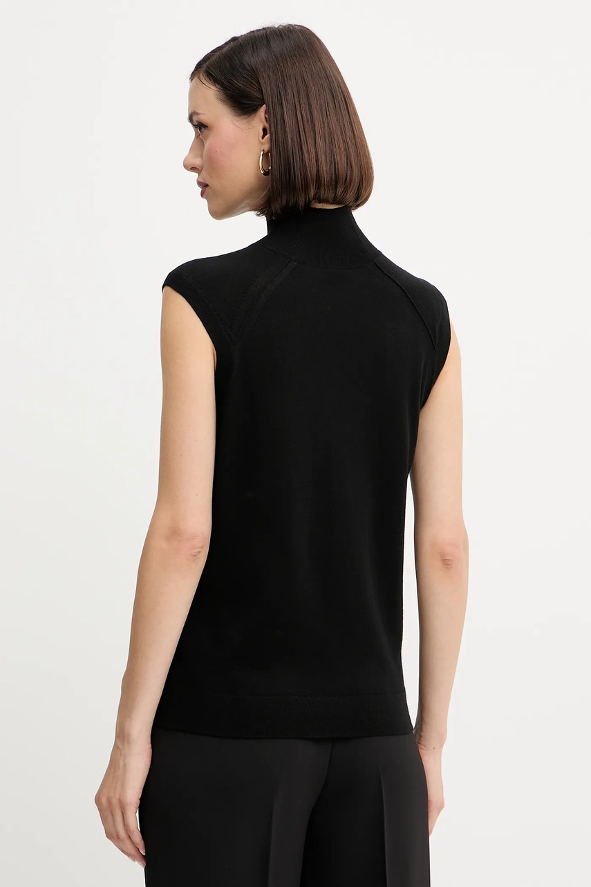 BOSS kamizelka wełniana damski kolor czarny lekki z półgolfem 50544998