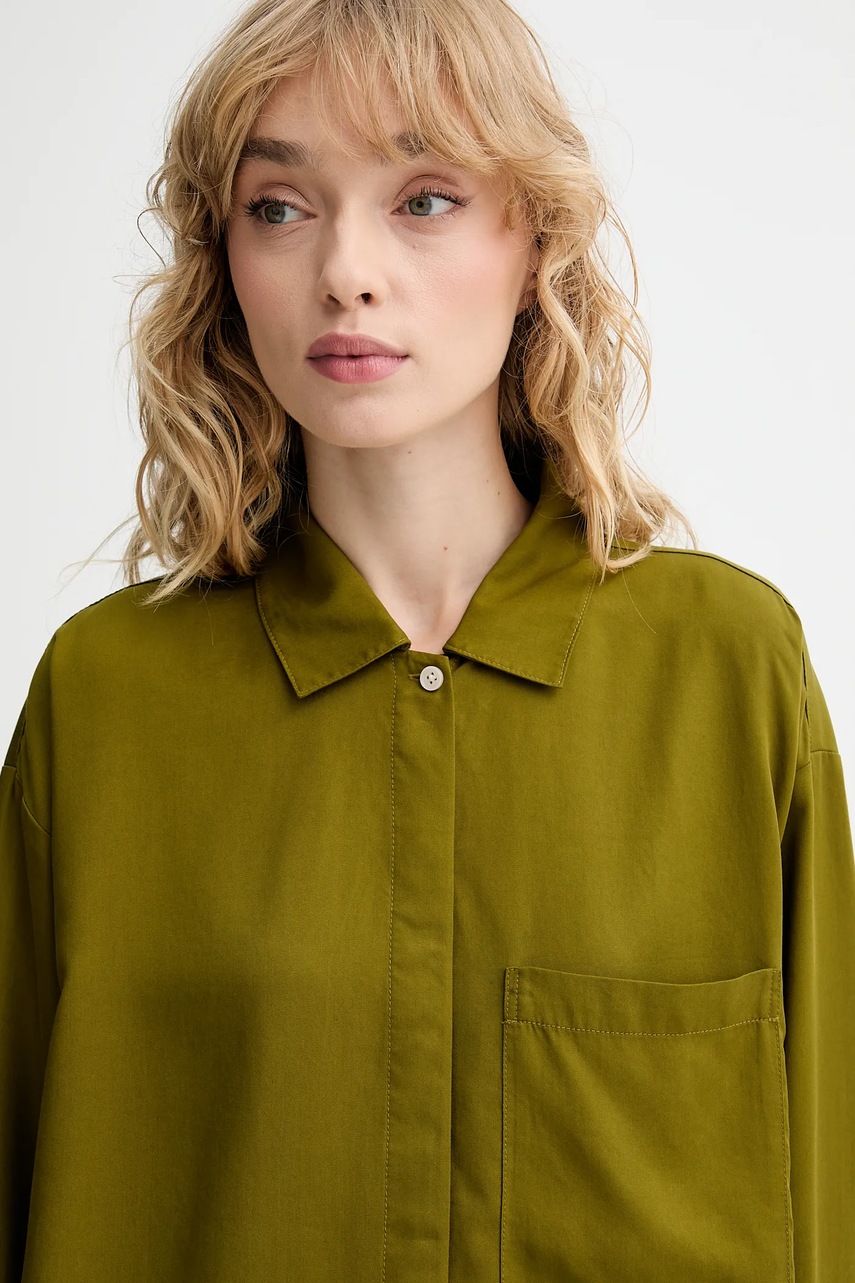 Marc O'Polo koszula damska kolor zielony relaxed z kołnierzykiem klasycznym 509152542109