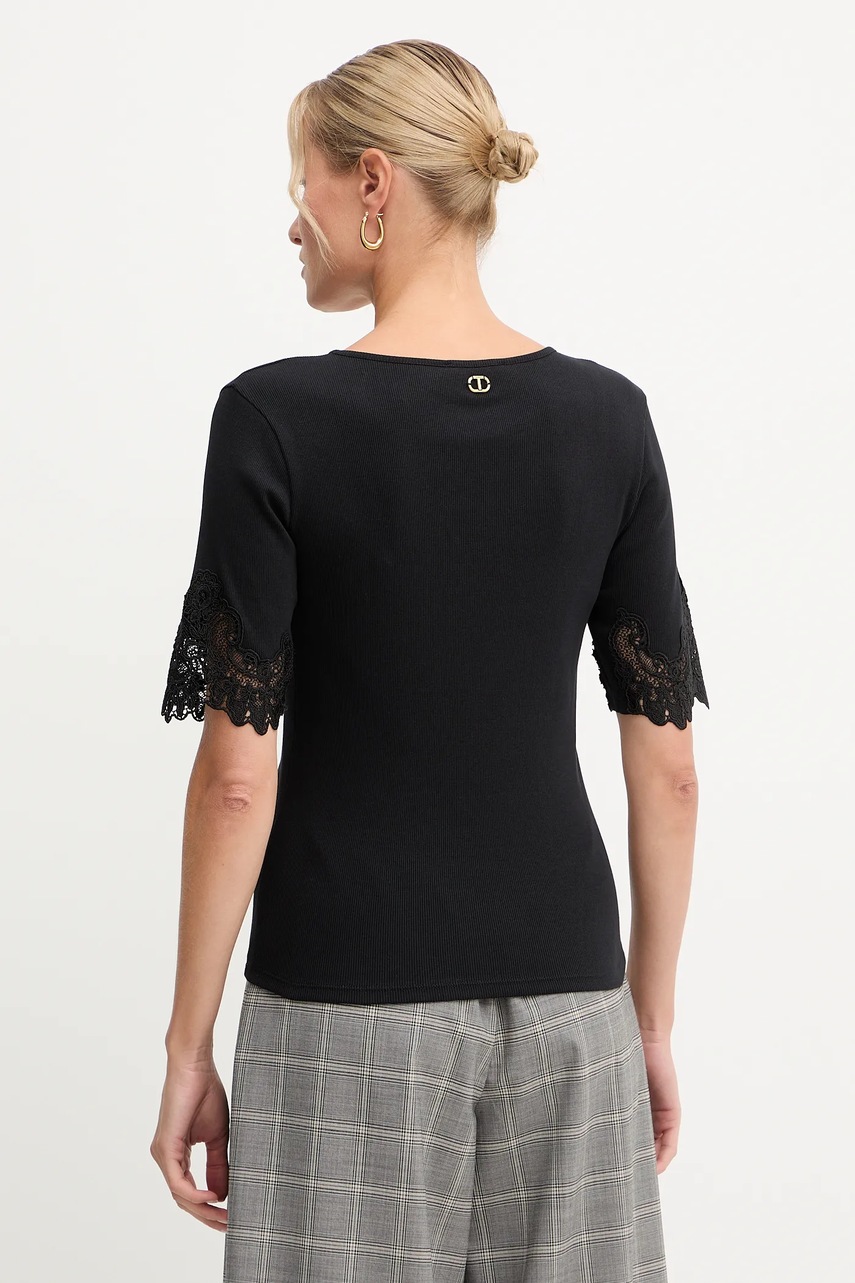 Twinset t-shirt bawełniany damski kolor czarny 252TT2170