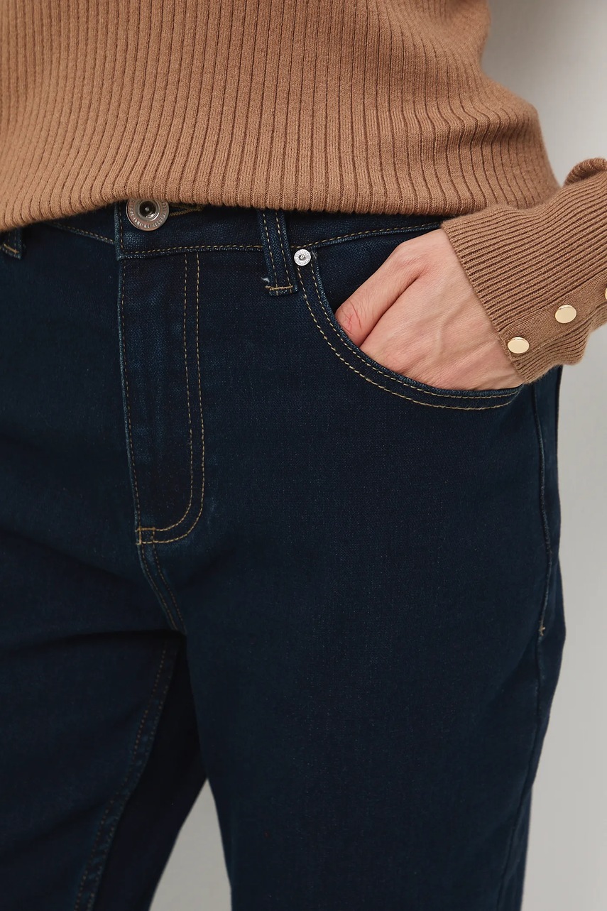 - Fason slim - jeansy o dopasowanym kroju z wąską nogawką, zarówno w okolicach ud, jak i kostki. Podkreślają naturalną linię sylwetki, lecz jej nie opinają - są komfortowe w codziennym użytkowaniu.