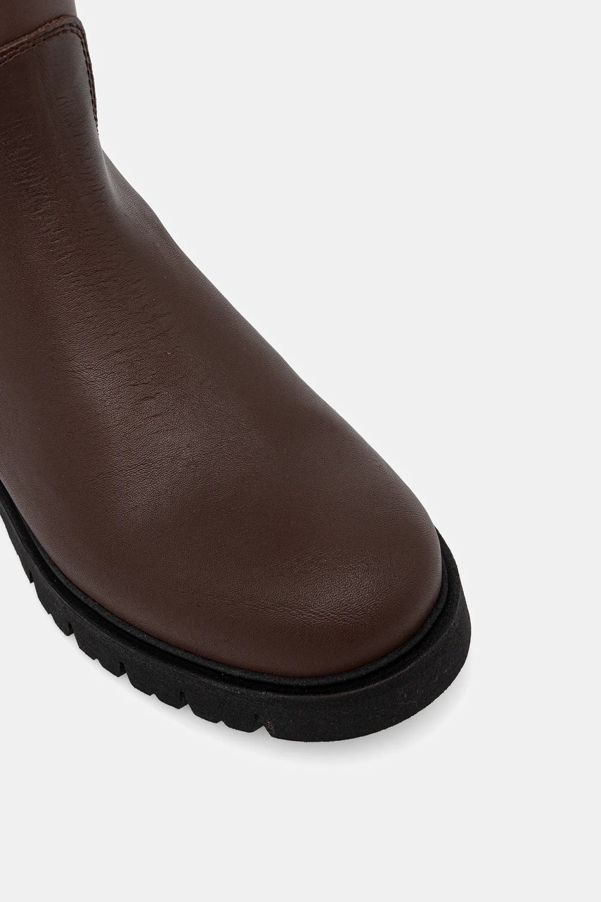 Tommy Jeans kozaki TJW STRETCHY LONG SHAFT damskie kolor brązowy na płaskim obcasie EN0EN02828