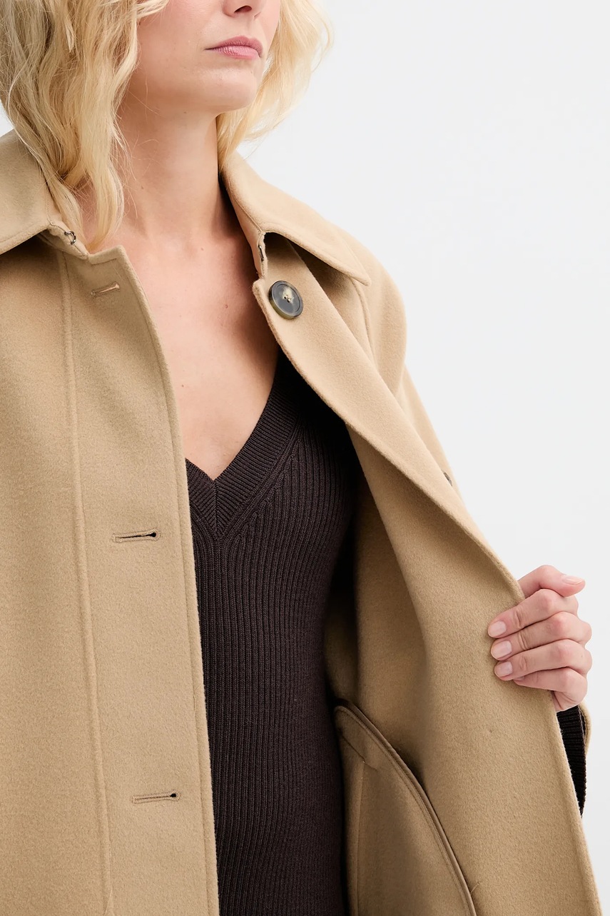 Weekend Max Mara płaszcz z dodatkiem wełny RUFO kolor beżowy 2525496012600