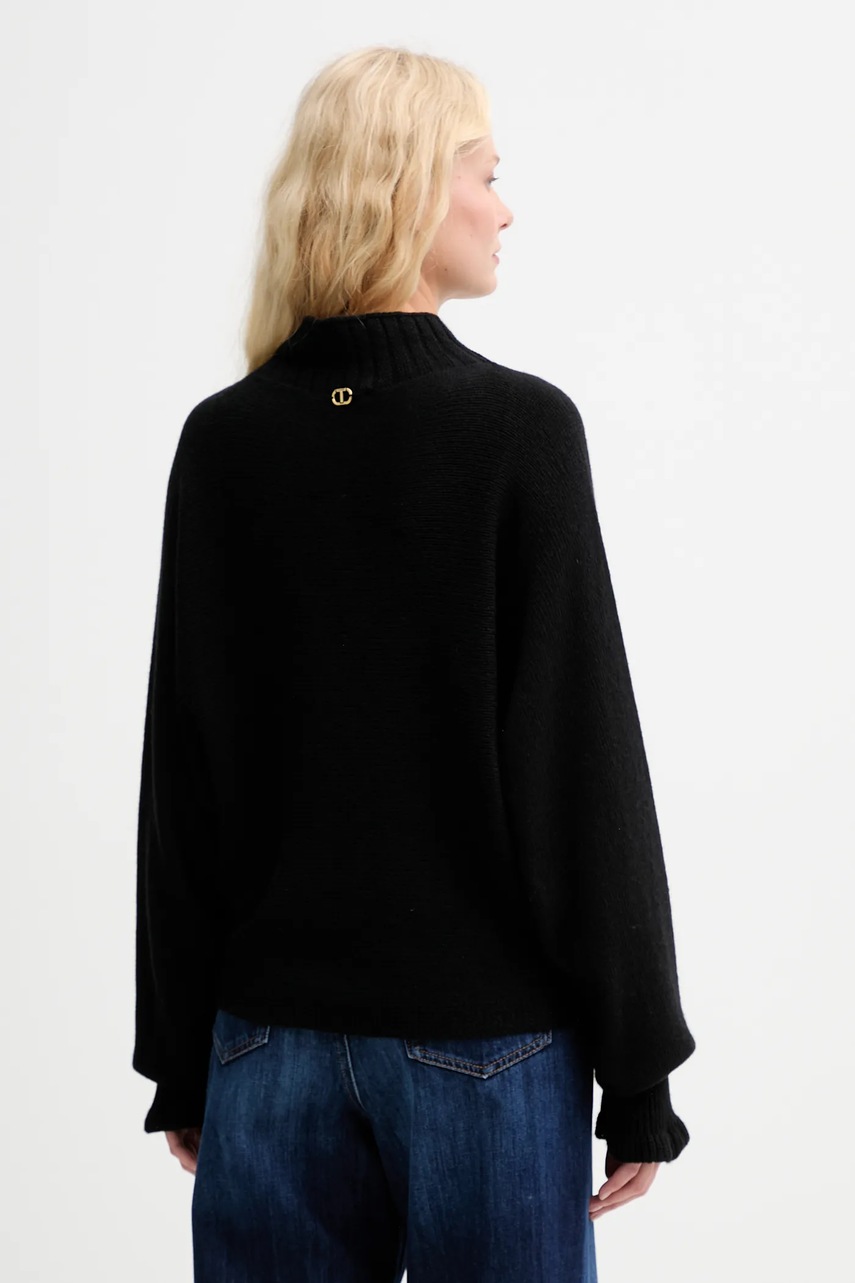 Twinset sweter z dodatkiem wełny damski kolor czarny lekki 252TT3353