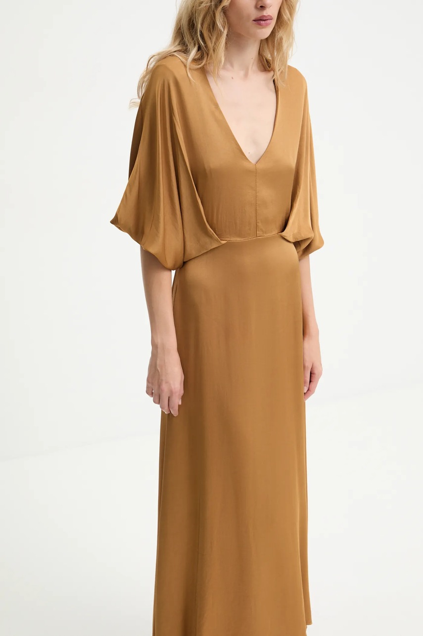 Answear.LAB sukienka kolor brązowy maxi rozkloszowana