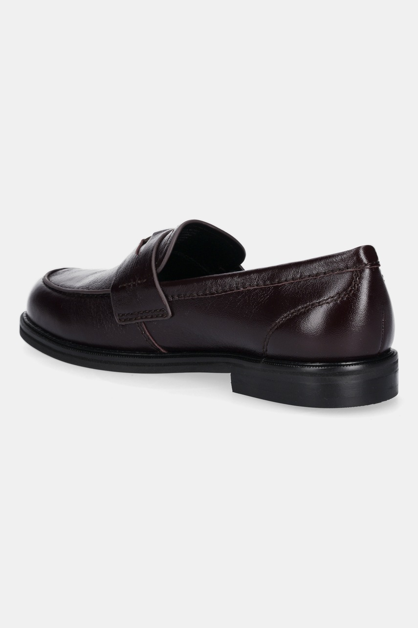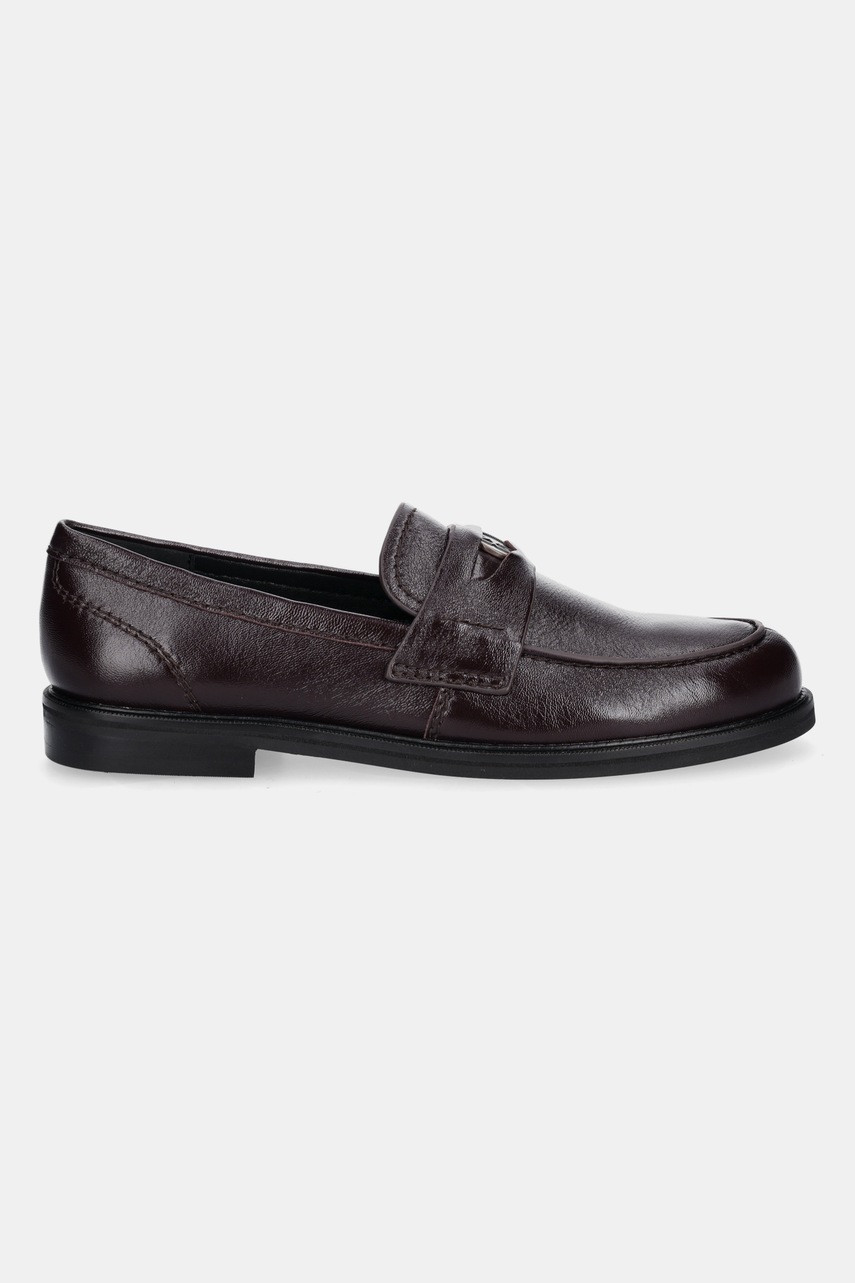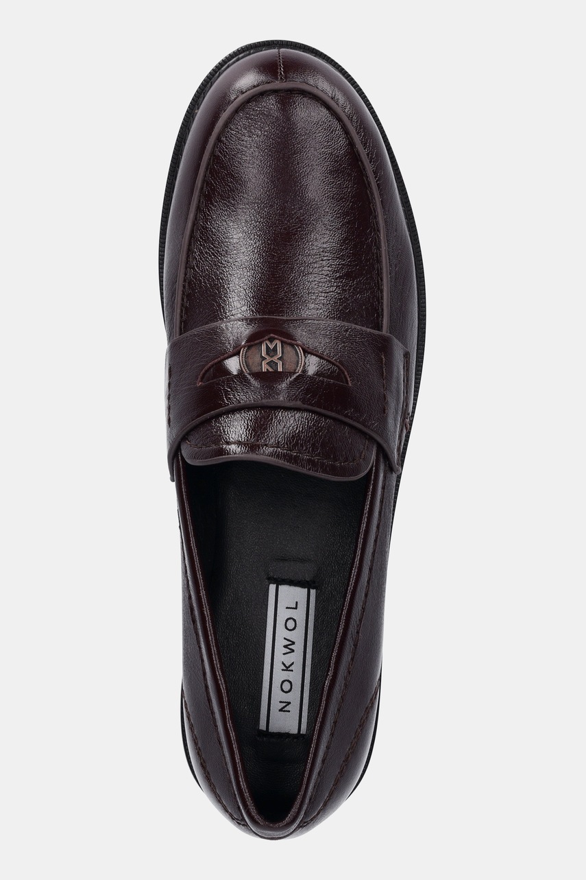 Nokwol mokasyny skórzane Moto damskie kolor brązowy na płaskim obcasie Moto