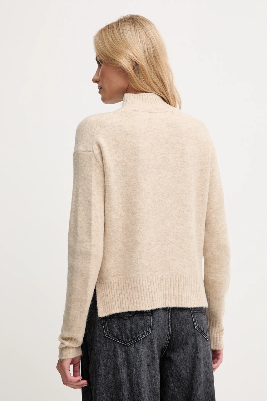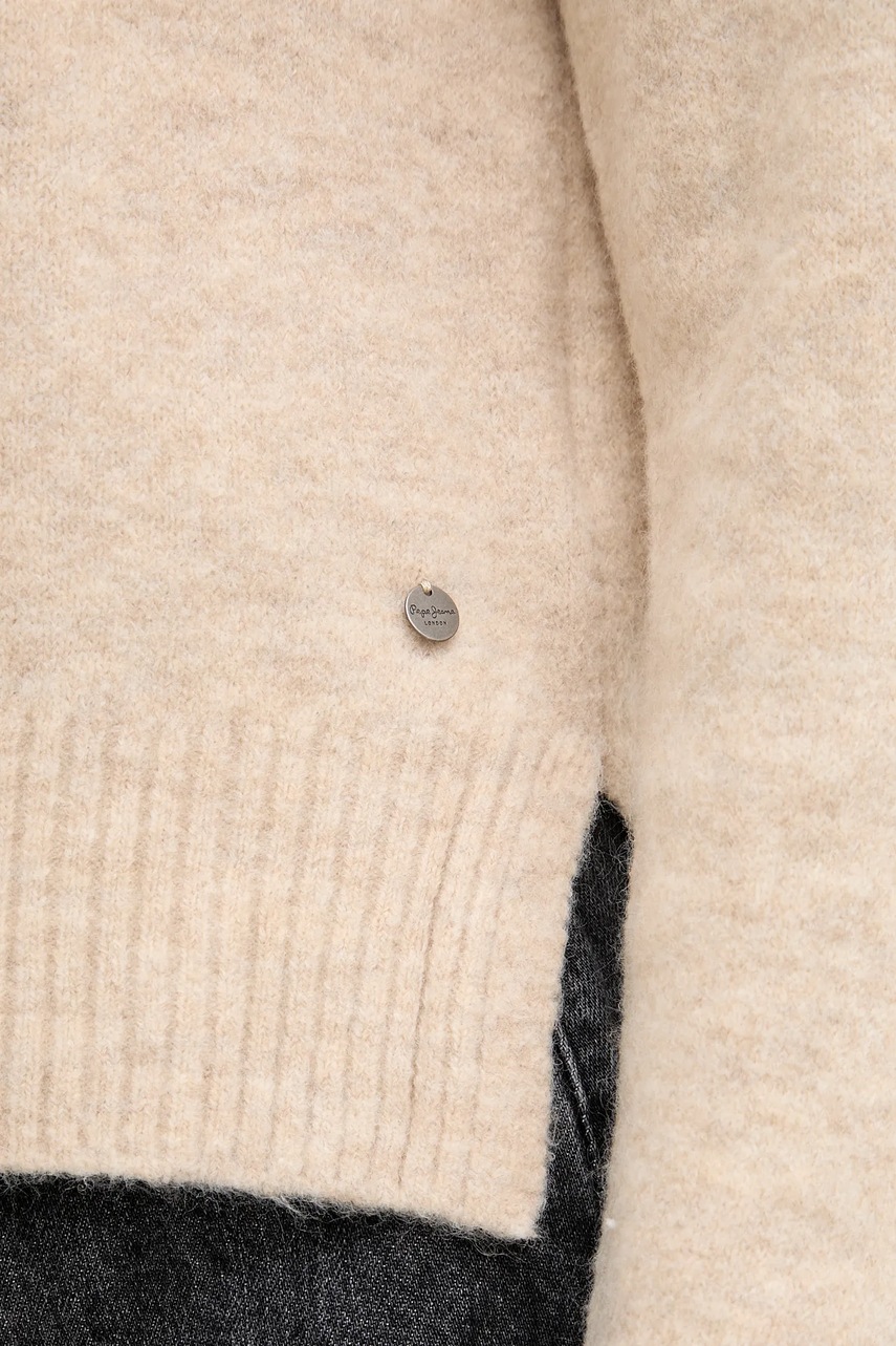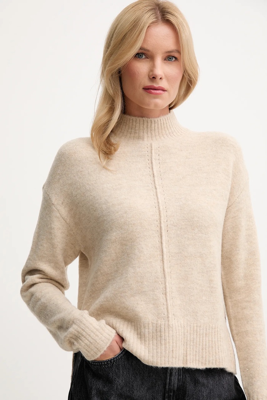 Pepe Jeans sweter z domieszką wełny damski kolor beżowy z półgolfem PL7000032